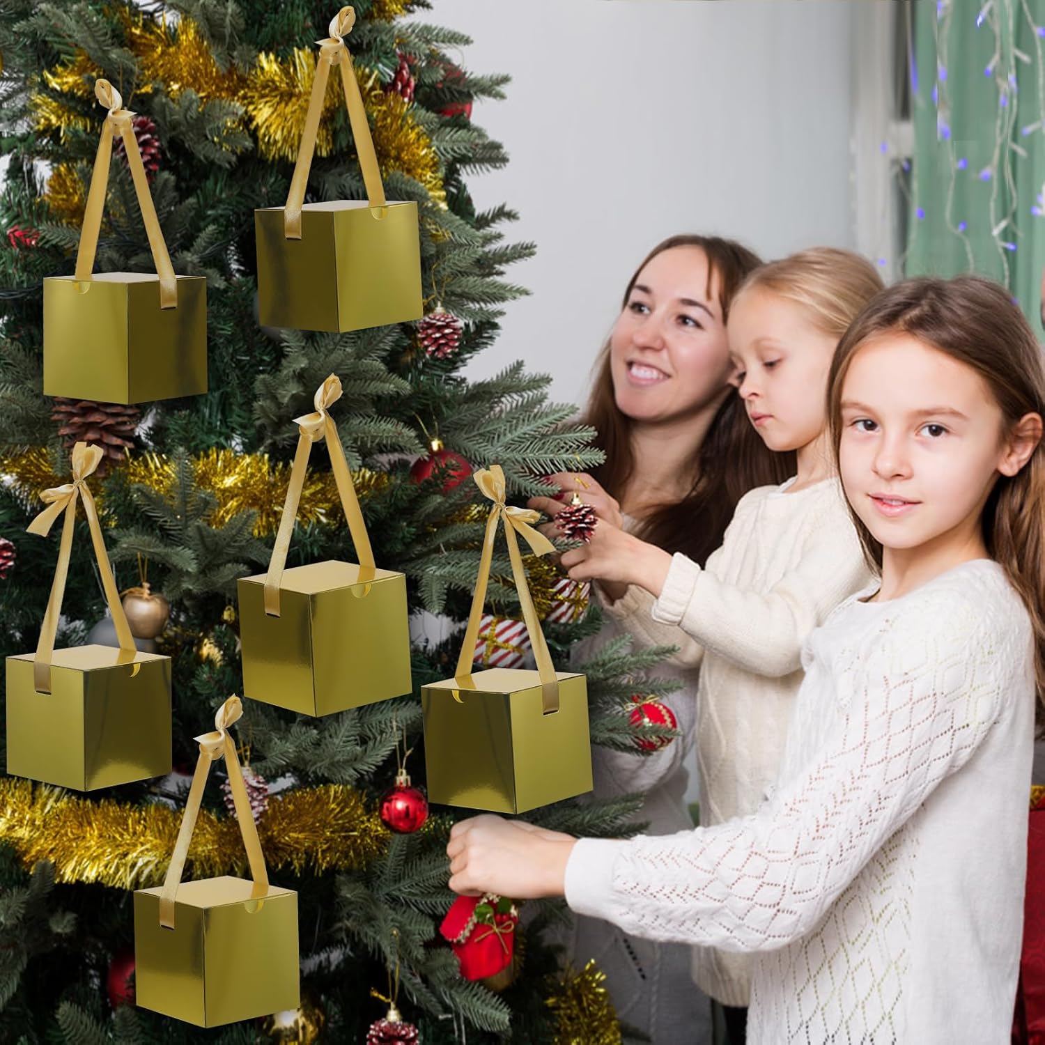 DOYIDE Small Gift Boxes, 20 Pack 5x5x5 Inch Gold Elegant Paper Boxes with Ribbons, Crafting, Christmas Gift Box Wedding Party Favor, Cupcake, Candy, Bridesmaids Proposal Box