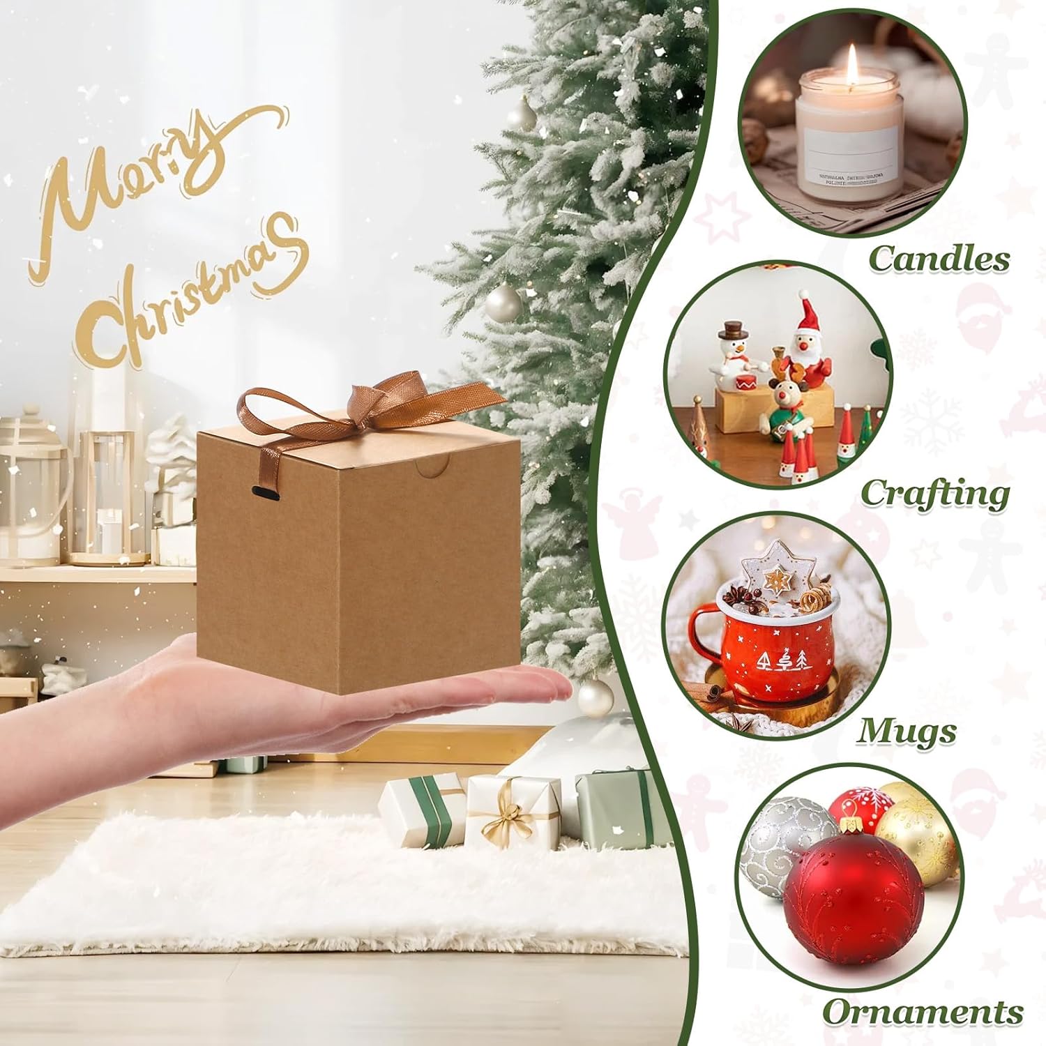 DOYIDE Small Gift Boxes, 20 Pack 5x5x5 Inch Brown Elegant Paper Boxes with Ribbons, Crafting, Christmas Gift Box Wedding Party Favor, Cupcake, Candy, Bridesmaids Proposal Box