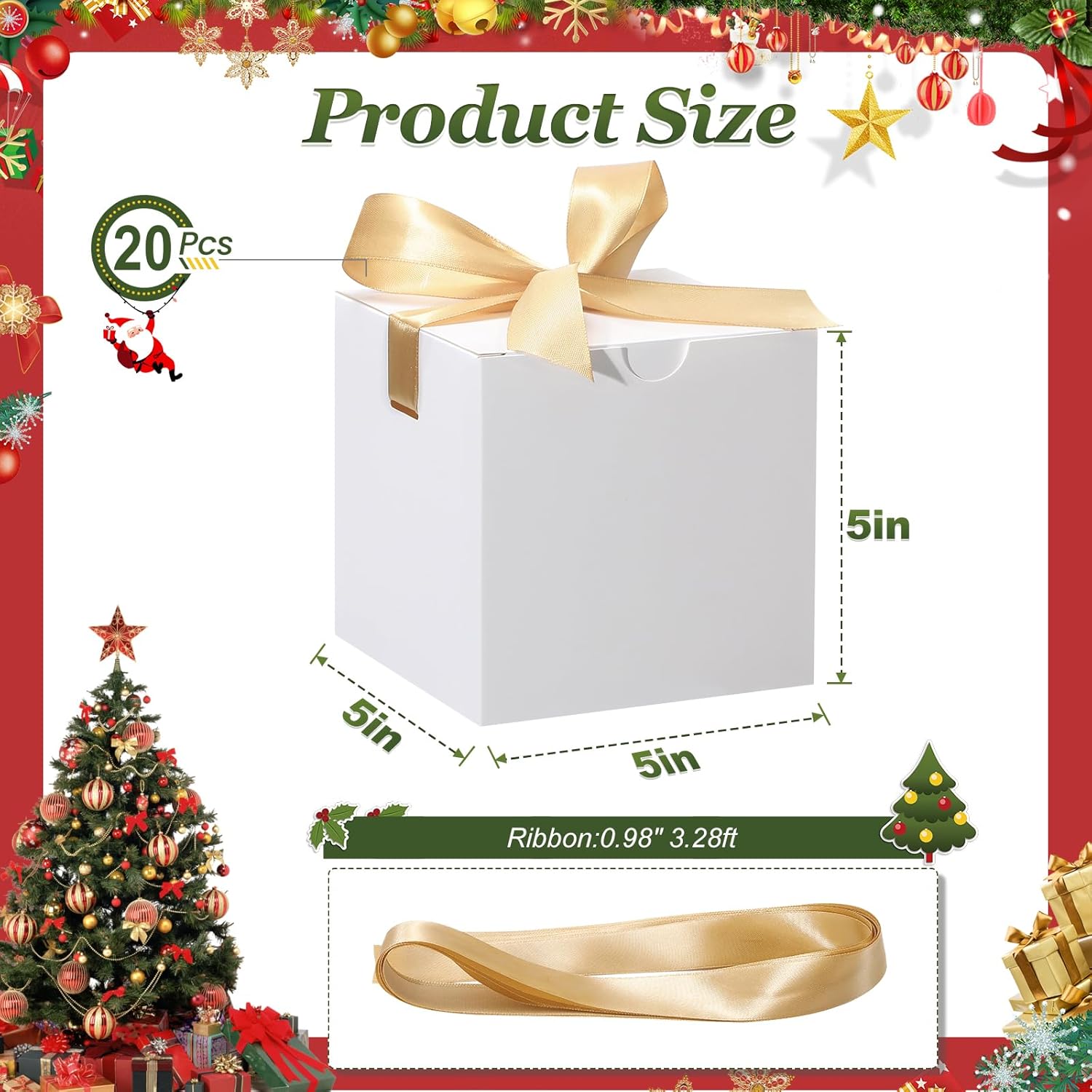• Size: Wedding gift boxes :5"x 5"x 5", Ribbon: 0.98 inch Width, 3.28ft length. cube shape ,prefect size for candies, chocolates, cookies, jewelry, bracelet, ring ,craft ,and other small gifts