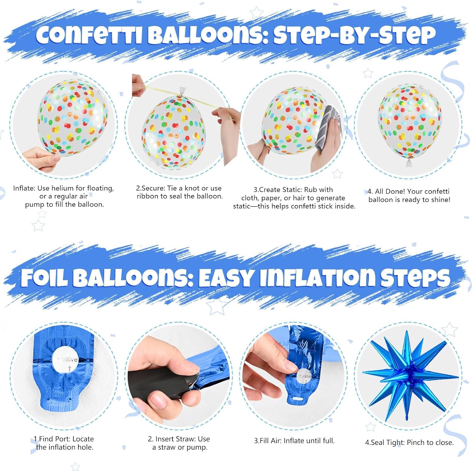 • 【Easy to Assemble】These party balloons can be inflated with air or helium. Use the white ribbon to assemble garlands, centerpieces, or balloon bouquets. Great for quick DIY setups that make your space festive in minutes.