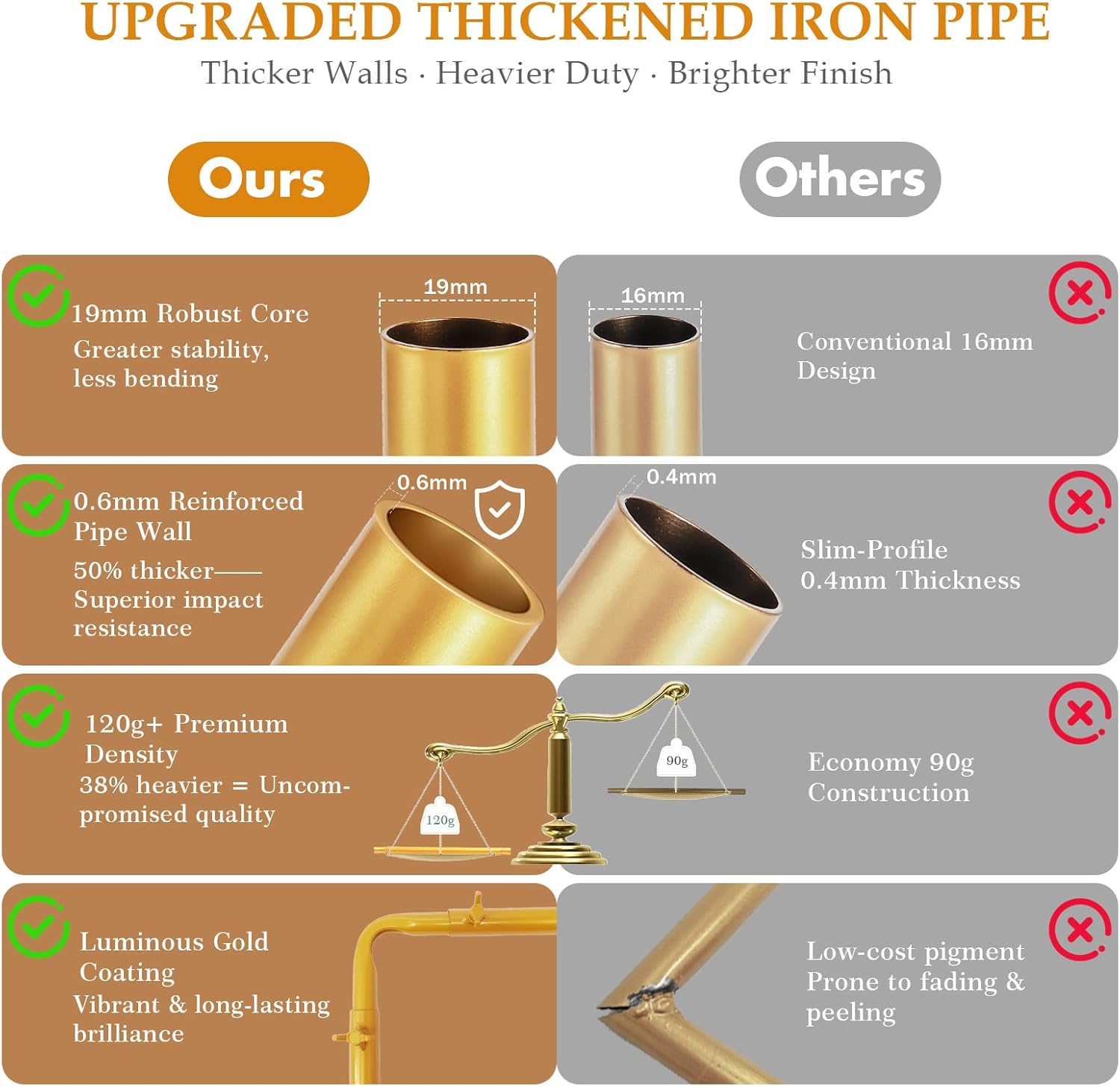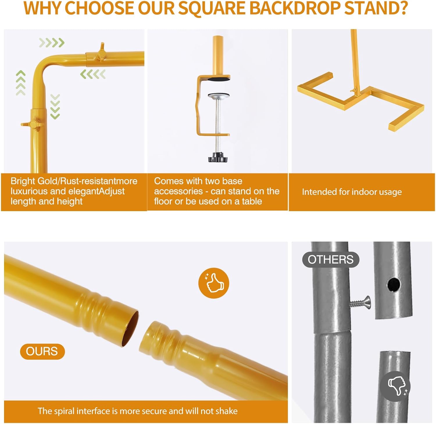 • PREMIUM HEAVY-DUTY METAL TUBING: Features thicker 19mm diameter pipes (vs. 16mm standard) with 0.6mm wall thickness (vs. 0.4mm) and 120g+ weight per pipes(vs. 90g). This heavy duty adjustable square stand with clamps offers superior stability and durability for long-lasting use.