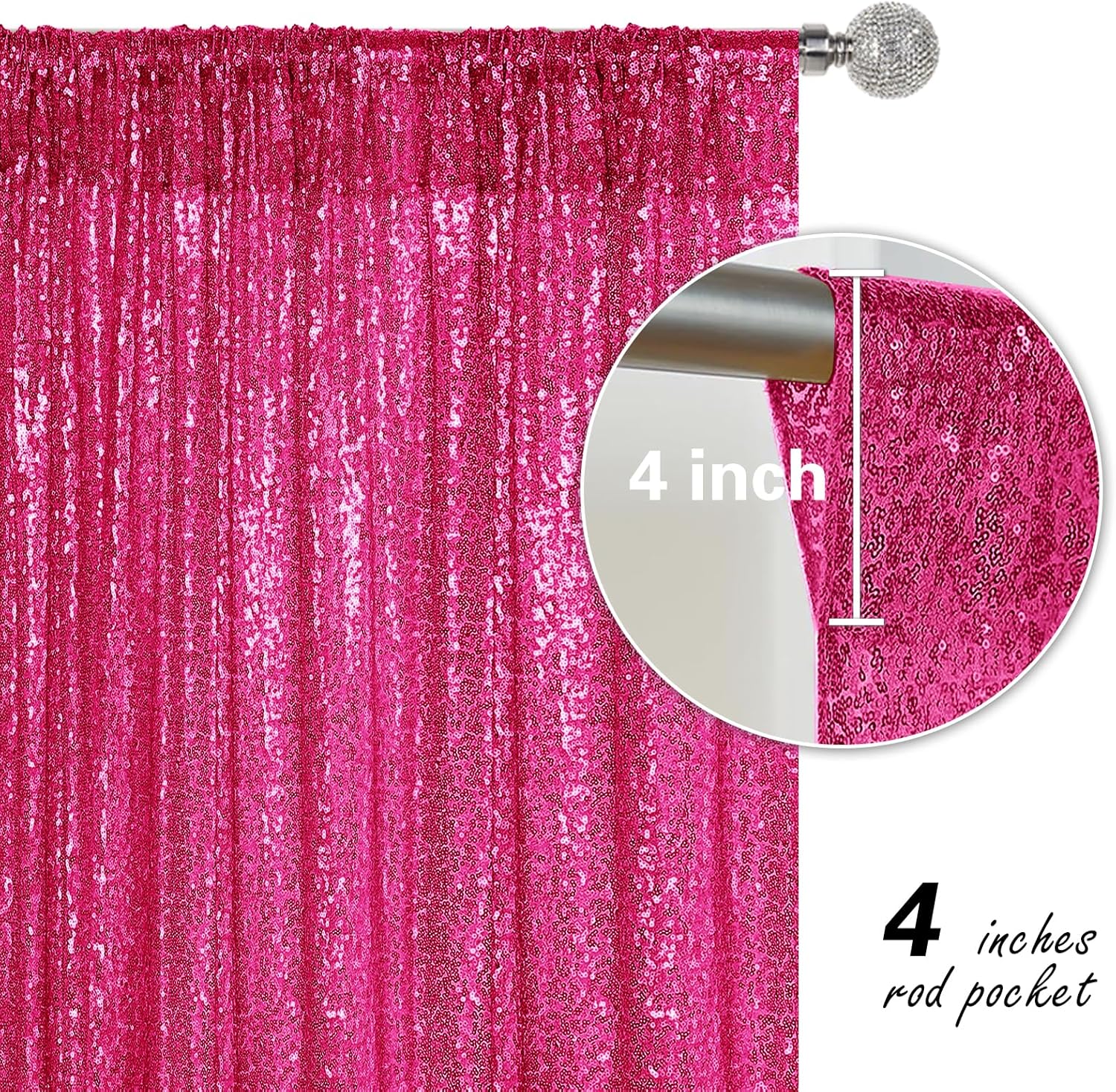 Fuchsia Sequin Backdrop Curtain 4 Pieces 2FTx8FT Glitter Photography Backdrop for Party Wedding Birthday Christmas Decorations