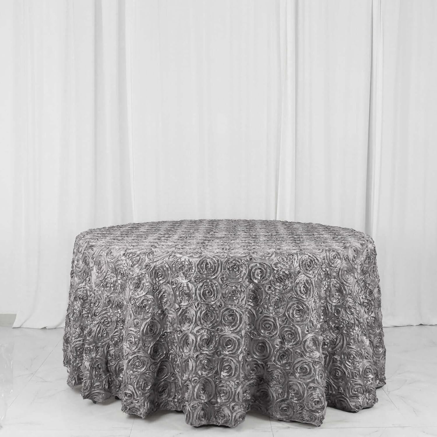 Efavormart 120" Wholesale Round Table Cover Silver Grandiose Rosette 3D Satin Tablecloth for Wedding Party Event Decoration
