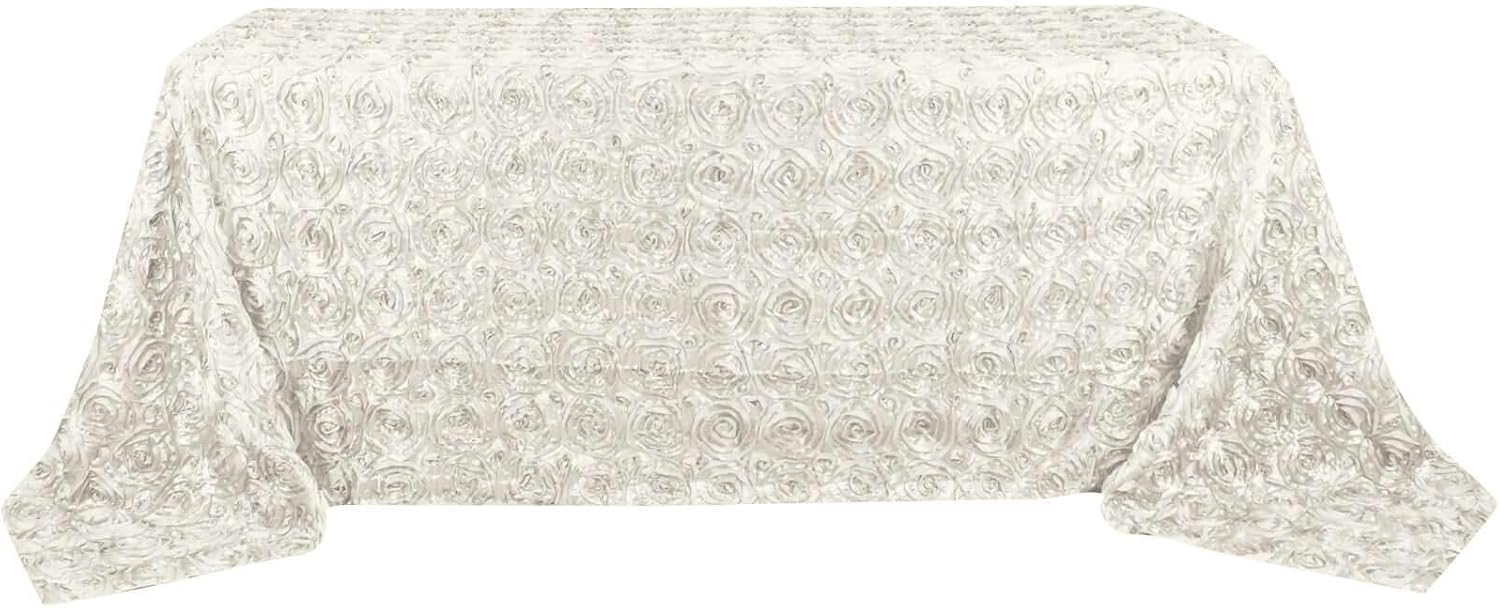 Efavormart 90"x132" Wholesale Rectangle Table Cover Ivory Grandiose Rosette 3D Satin Tablecloth for Wedding Party Event Decoration