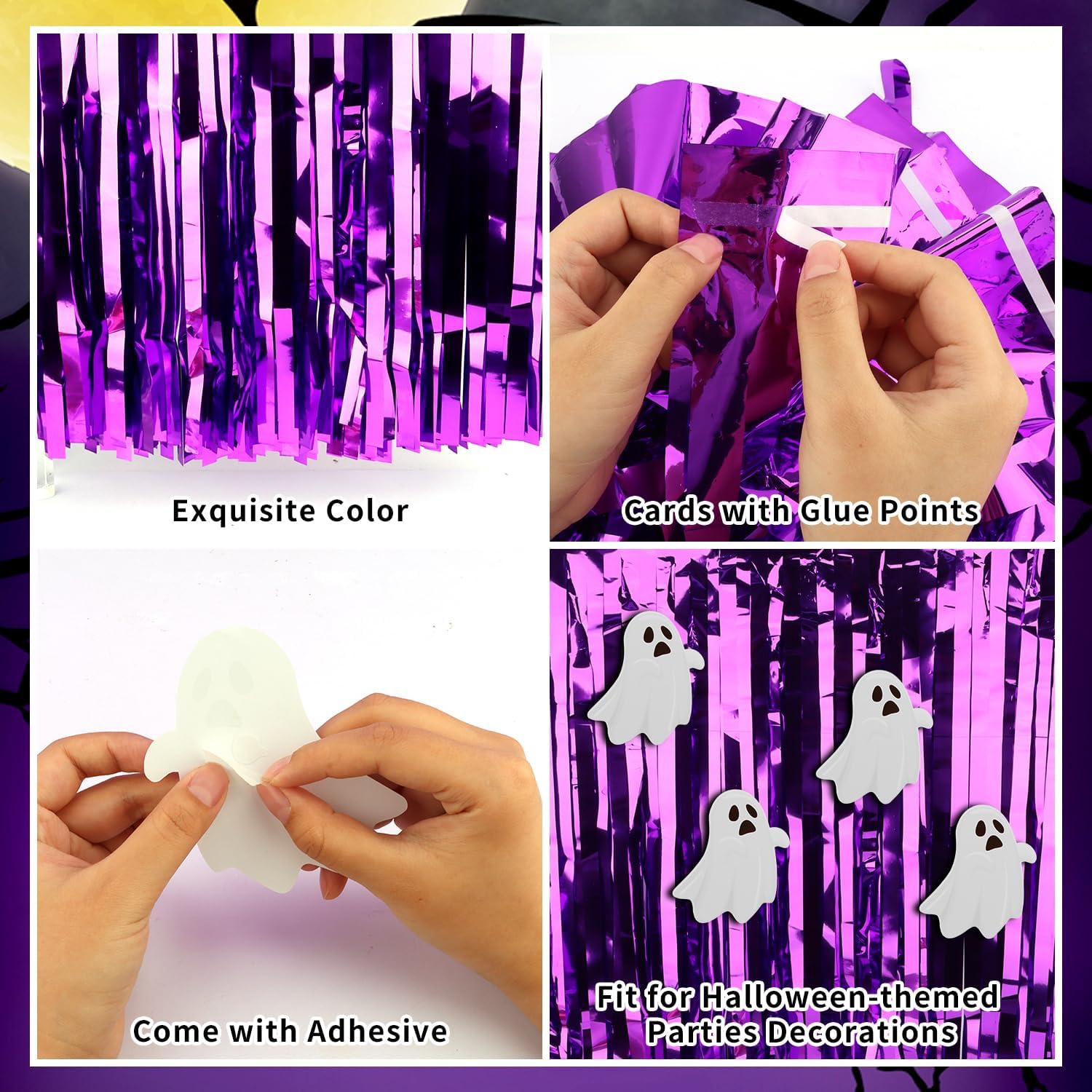 • The packaging includes: 1 pack metallic foil tassel table cover 28.74x106.3 inches, which is enough to decorate your halloween party, provide you with excellent convenient installation: the halloween table cloth is equipped with self-adhesive tape. Just tear off the tape and paste it. There are ten ghost stickers, 2.95x4.33 inches, and adhesive dots provided in the package for sticking the stickers onto the halloween tablecloth. The installation is convenient and quick. It can be pasted on the edge of your round table or rectangular table. It can be easily cut into any siz.