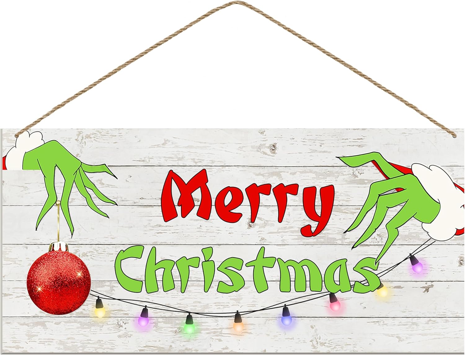 • Merry Christmas Sign: You will get a Christmas sign and a piece of twine, size:14 x 6.7 x 0.2in.High quality material, lightweight, durable and easy to install, allowing you to quickly decorate for the holidays. Suitable for indoor and outdoor hanging