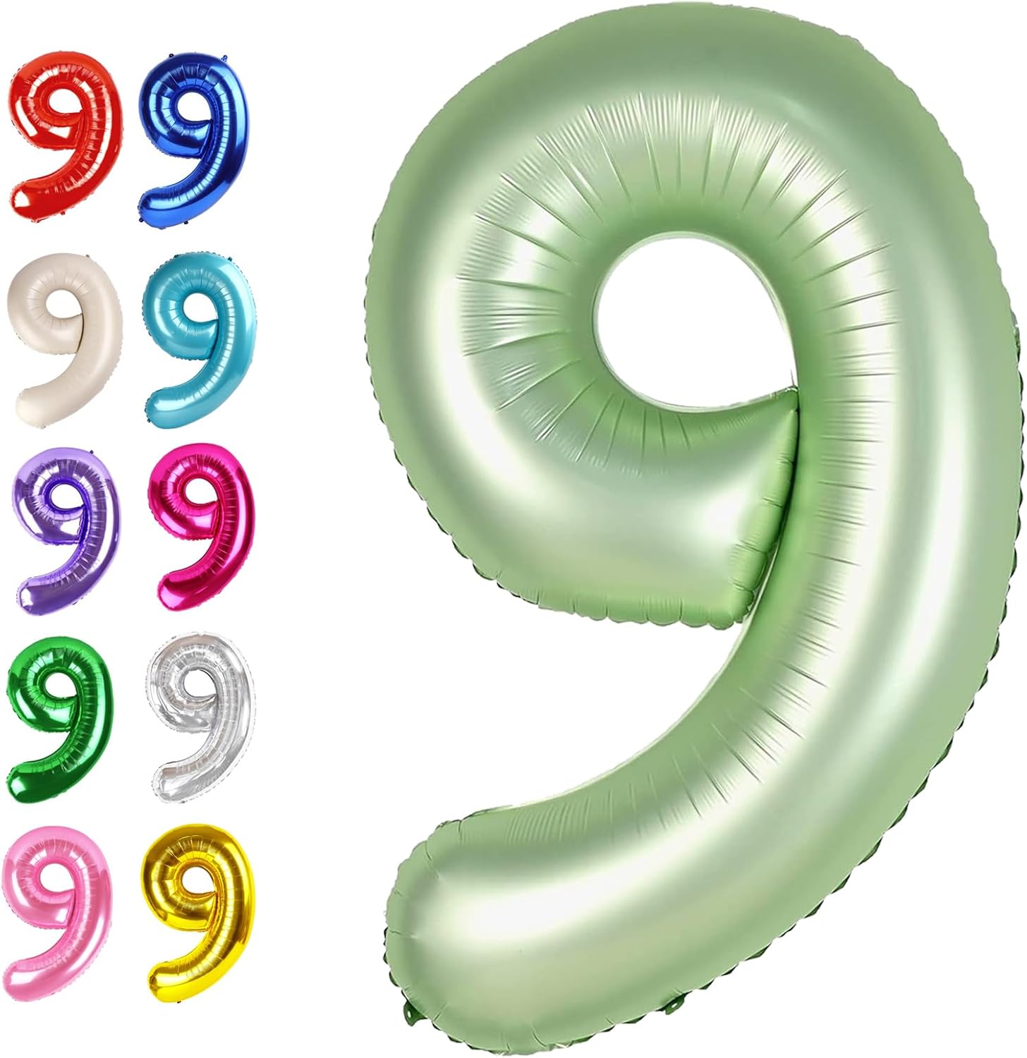 Big Sage Green 40 Inch 9 Balloon Number, Jumbo Giant 9th 19 29 39 49 99 Birthday Party Decorations, Large Oliver Green Foil Balloons Anniversary Birthday Party Engagement Decorations