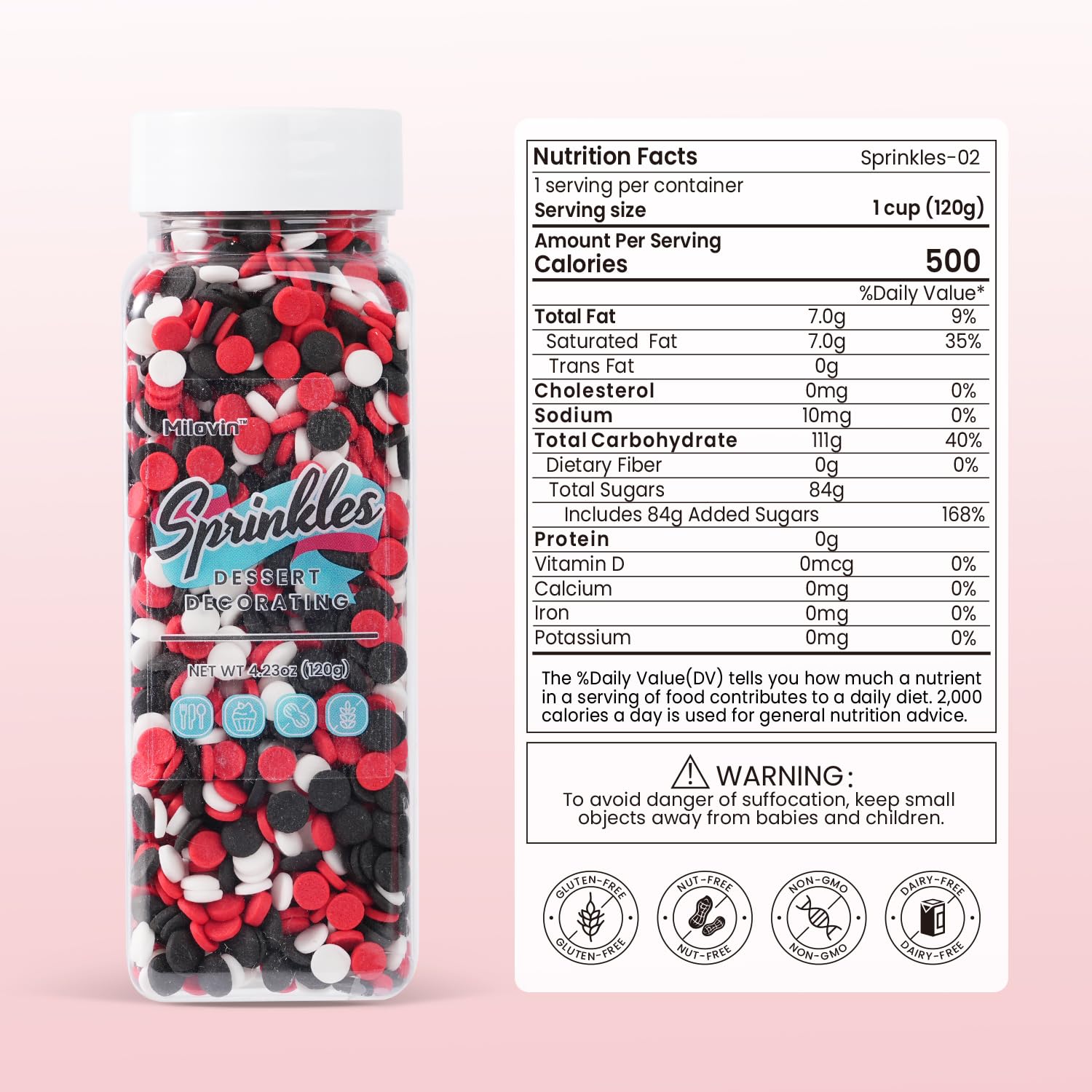 • High Quality and Safe: Made with food-grade ingredients. Edible, Nut-free, Dairy-free, Non-GMO. Our red and black white sprinkles meet American food standards and guard your and your family's health