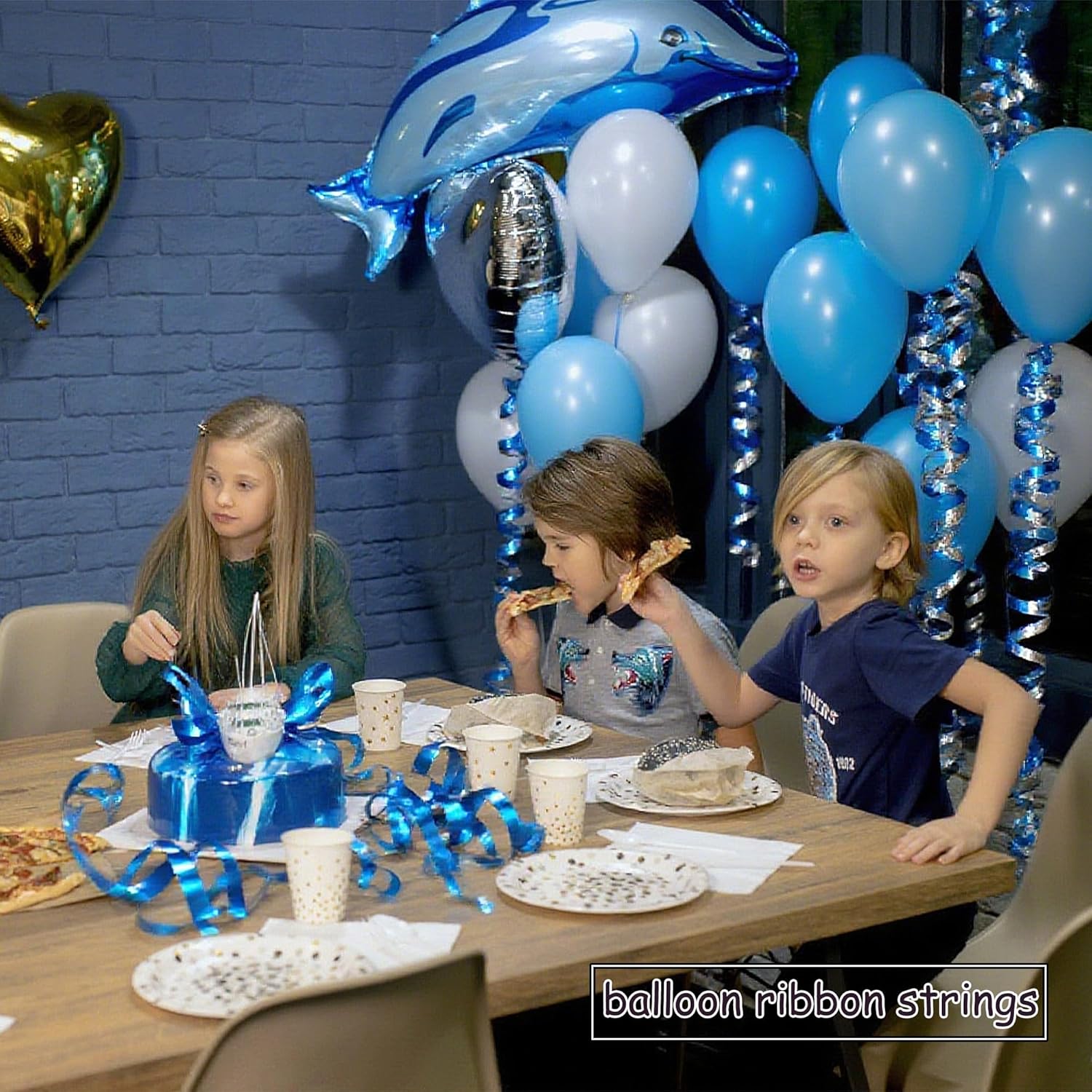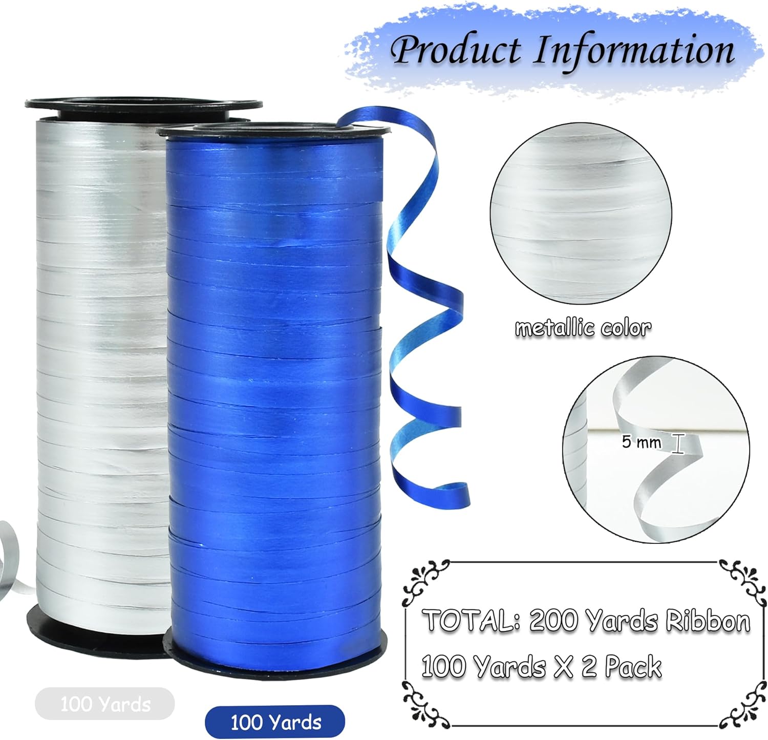 BEISHIDA Blue and Silver Curling Ribbons Balloon String Ribbons - 2 Pack 100 Yards for Gift Warppping Birthday Bachelor Party Decorations