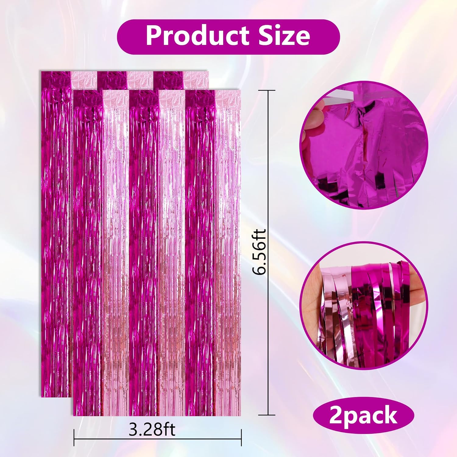 • Dimension: these foil fringe backdrop curtains are 3.28 x 6.56 ft in size; They are cuttable, you can adjust their size in your own way.