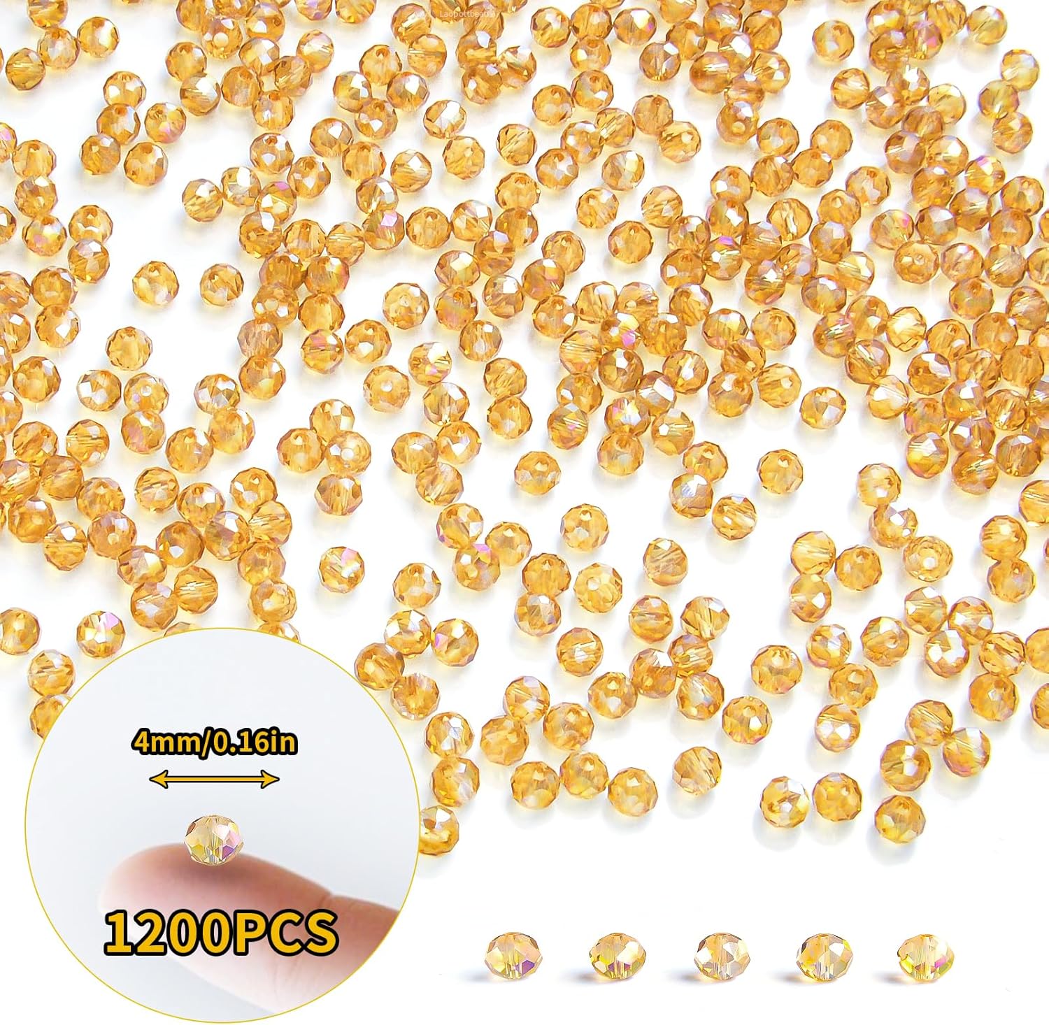 1200 Pcs 4mm Round Crystal Glass Beads for DIY Jewelry, Ideal for Bracelets, Necklaces, Pendants, and Handmade Craft Projects(Gold Champagne)