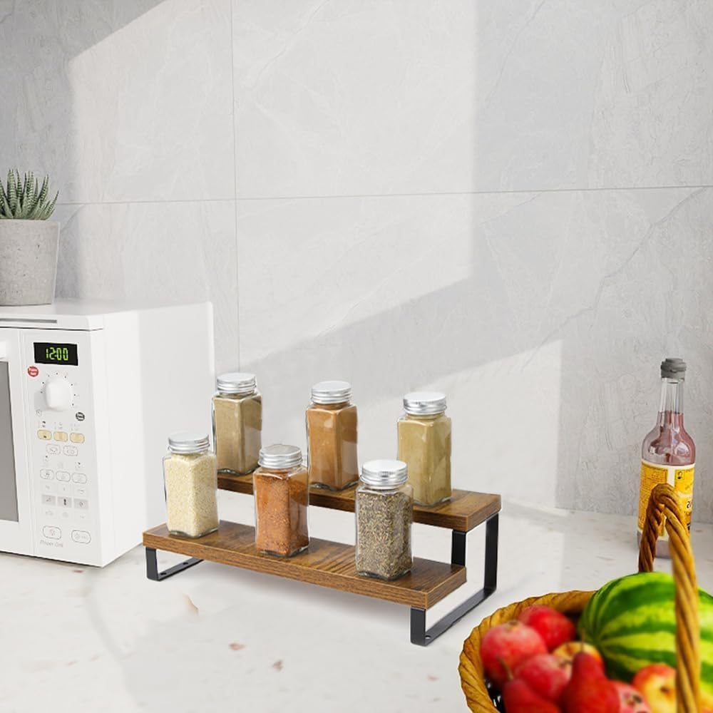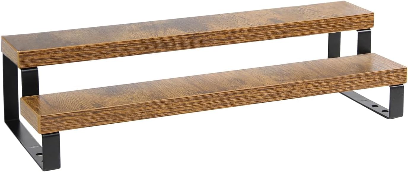 4-Tier Wooden Display Riser Shelf Stand for, Makeup, Cupcake, Condiment & Dolls Collection Home Decor Organizer, Expandable for Pantry/Counter (Brown, 2-Tier)