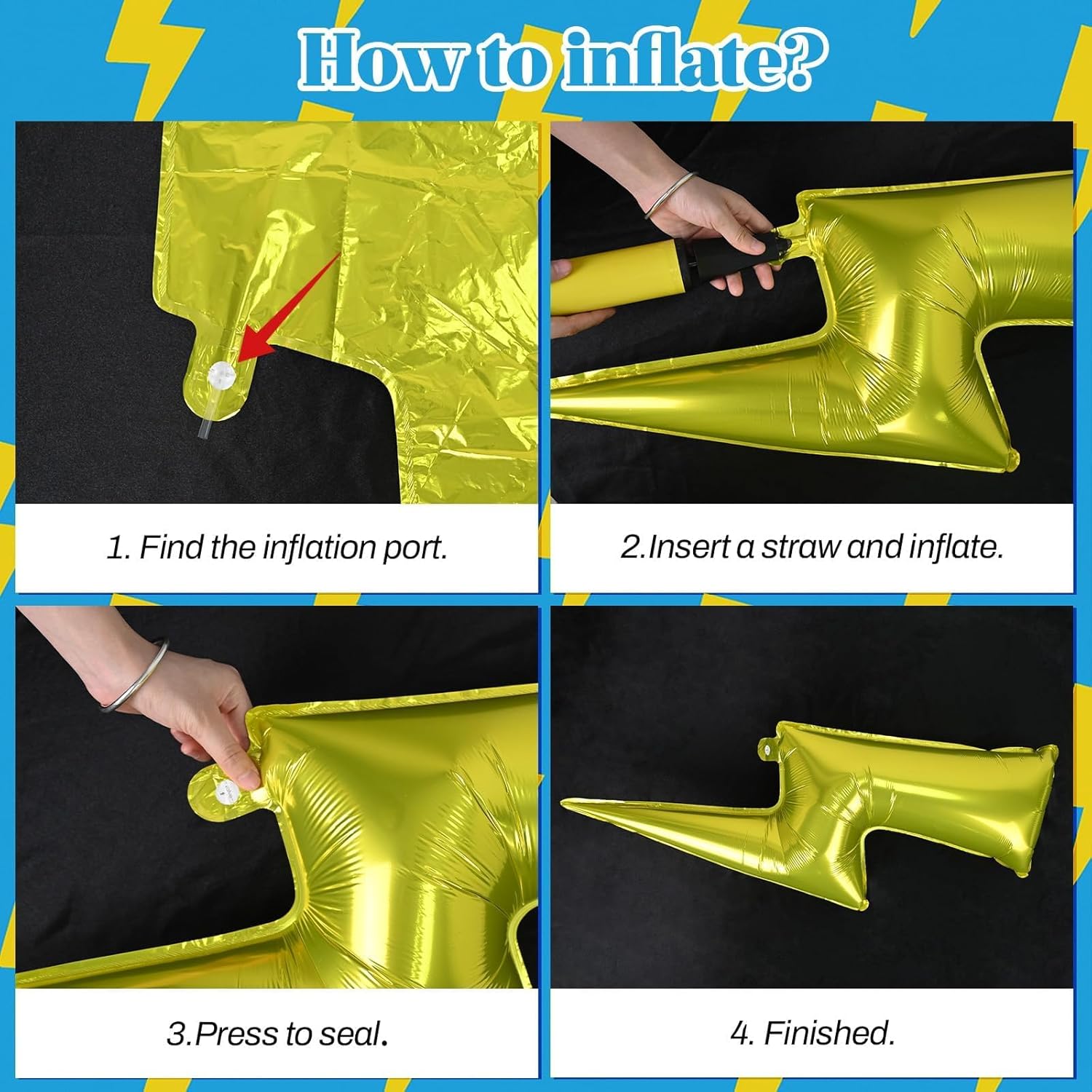 • Red Yellow Blue Balloons Set: This package includes 1pc large lightning foil balloon, 1pc 22 inch blue star foil balloon, 4pcs 12 inch red blue yellow confetti balloons, 4pcs 12 inch dark blue lightning printed balloons, 6pcs 12 inch red balloons, 6pcs 12 inch yellow balloons, 6pcs 12 inch light blue balloons, 2pcs 12 inch dark blue balloons, 4pcs 12 inch metallic gold balloons. Arrives ready to use with ribbon—just inflate and decorate.