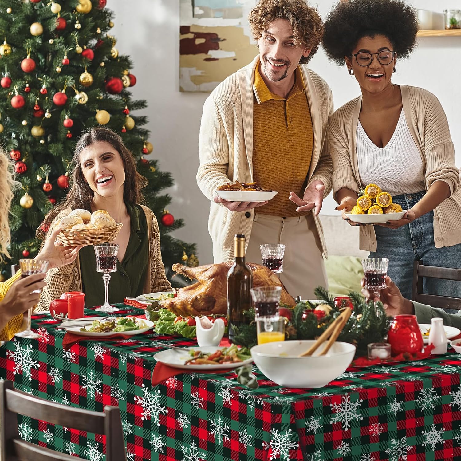 • Package include:you will get 1 roll of red and greed buffalo plaid snowflake Christmas plastic tablecloth,all over printed with white snowflake patterns on red and green buffalo plaid background,ideal for decorating your winter holiday and Christmas party supplies and decorations
