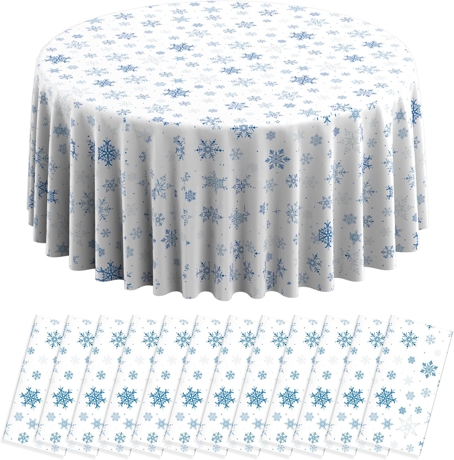 • What will you receive: 12 pieces round Christmas party tablecloth,all over printed with blue snowflake patterns on white backdrop,ideal for decorating your winter holiday and Christmas party supplies and decorations