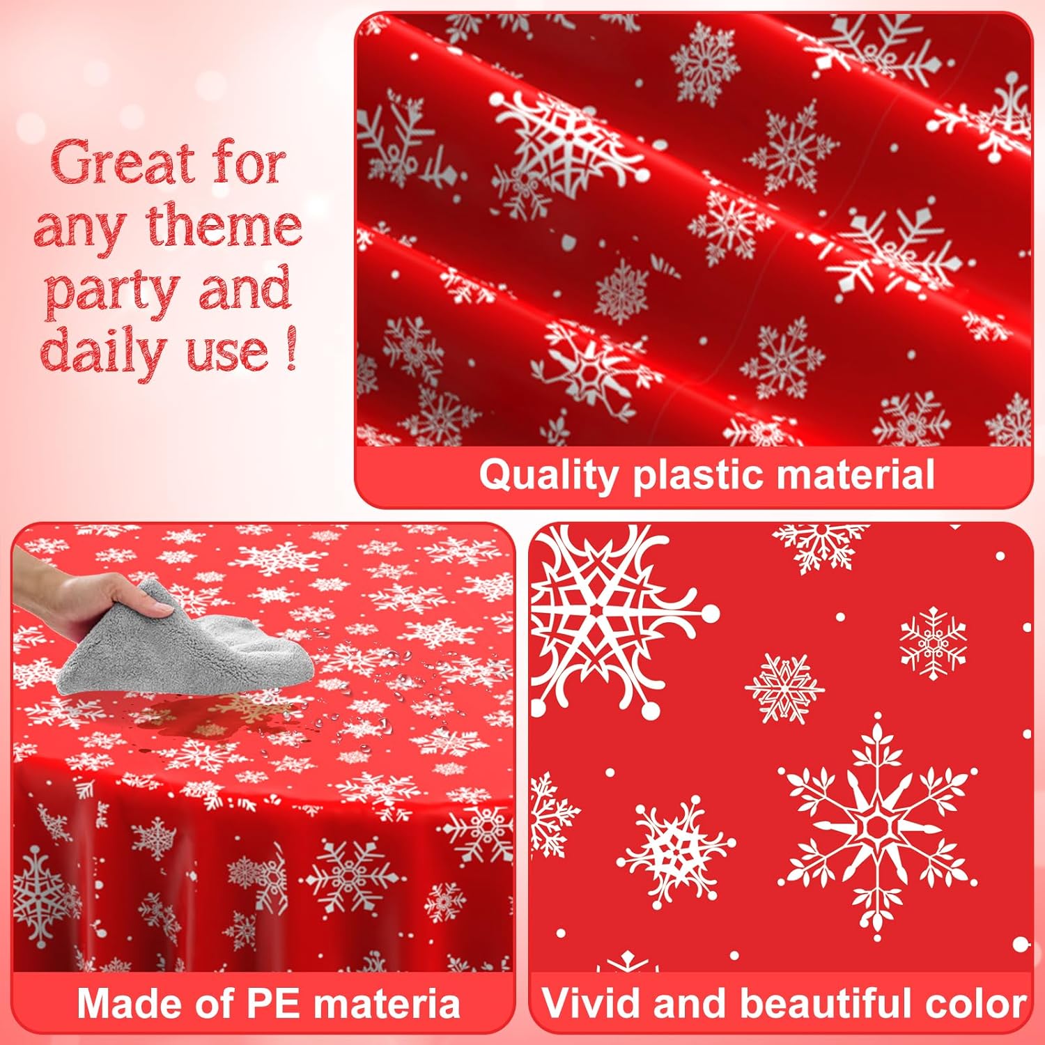 12 Pieces Christmas Snowflake Plastic Party Tablecloth Decorations, Disposable White Snowflake Red Xmas Round Table Cover Backdrop for Winter Christmas Holiday New Year Party Supplies,84 inch (Red)