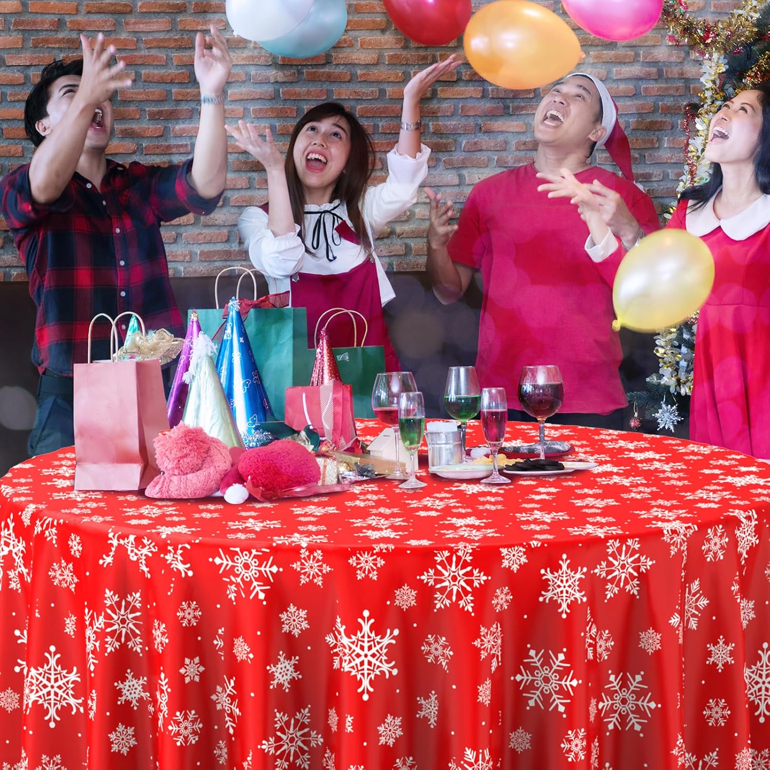 • Extra large size: these red snowflake Christmas party tablecloth measures approx. 84 inch, which fits for various-sized tables that can accommodate 8-10 people, It’s large enough for your to hold a winter holiday and Christmas theme party with your family and friends to share happiness