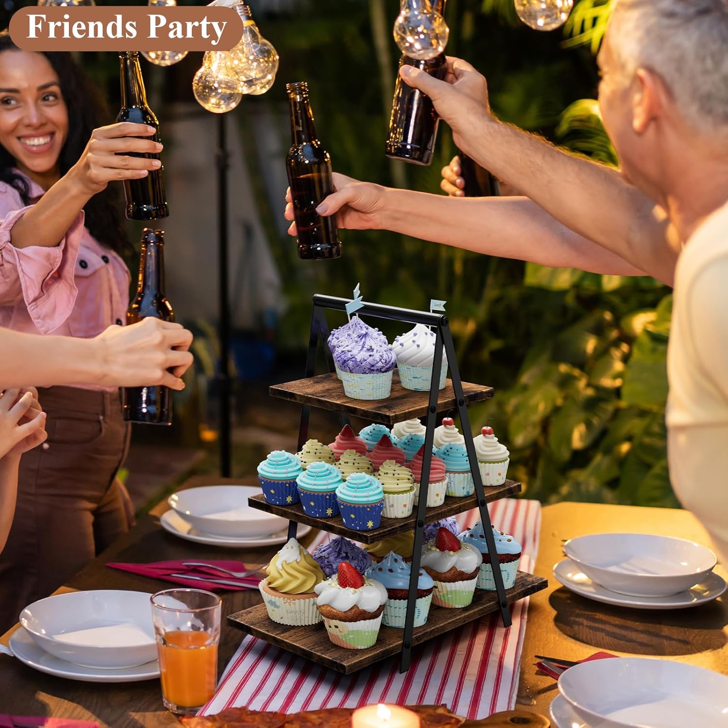 • 【Sturdy & Stable】: This cupcake display stand is both stylish and stable when displaying cupcakes. Made of thickened MDF board and a sturdy triangular metal frame, this dessert table display set with stands both casual handling and extended use. A handle on top makes it easy to reach. It's the perfect choice for parties.