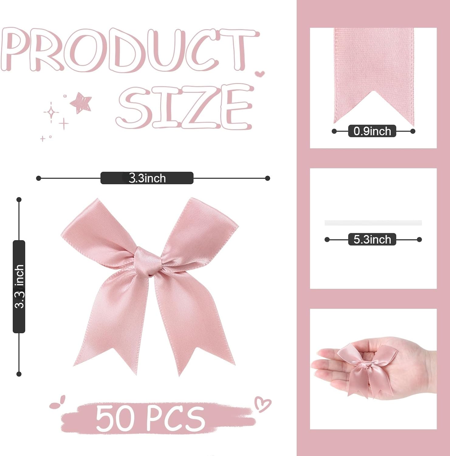 • 🎁 50-Pack Value  Bulk set of 50 elegant bows (3.3 inch/8.4cm) perfectly sizes for gift boxes, favor bags, or small décor projects—eliminates last-minute shopping stress.