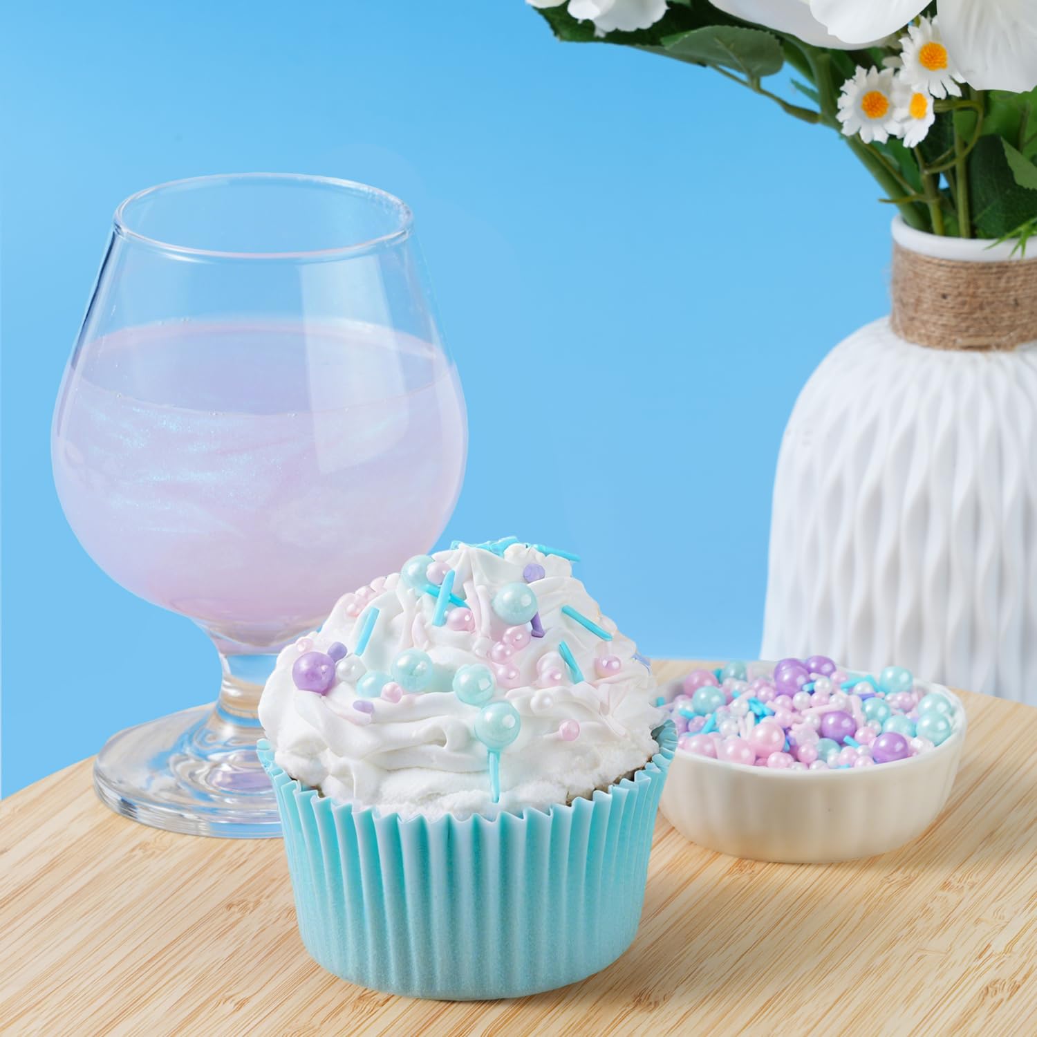 • Pastel sprinkles add a dreamy touch to desserts – These edible glittery sugar pearls feature soft blue, purple, and pink hues, perfect for birthday cakes, cupcakes, cookies, and donuts.