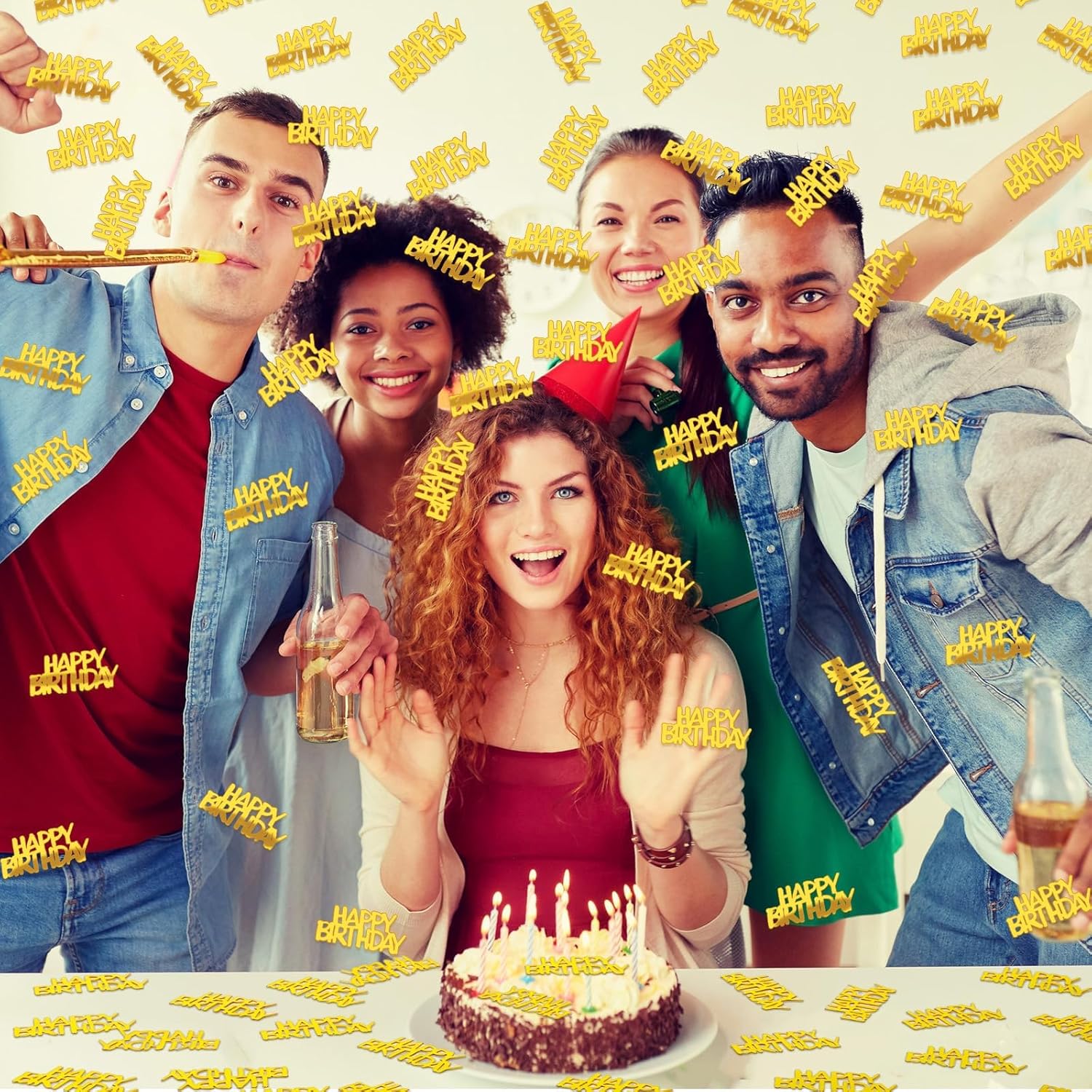 MARFOREVER Gold Happy Birthday Confetti Glitter, Birthday Party Metallic Foil Table Confetti Golden Birthday Cake Balloon Sprinkles Table Centerpiece for Adult Baby Birthday Party Decorations