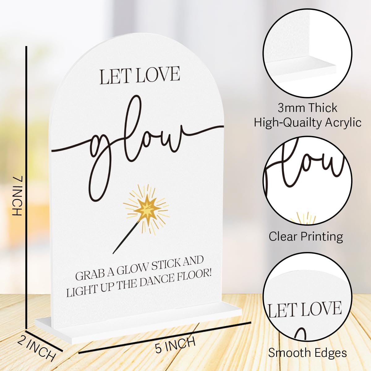 Wedding Glow Sticks Light Up Sticks Sign for Reception Acrylic Arch Dance Floor Props Table Decor Signs for Wedding Bridal Shower 7 x 5 Inches
