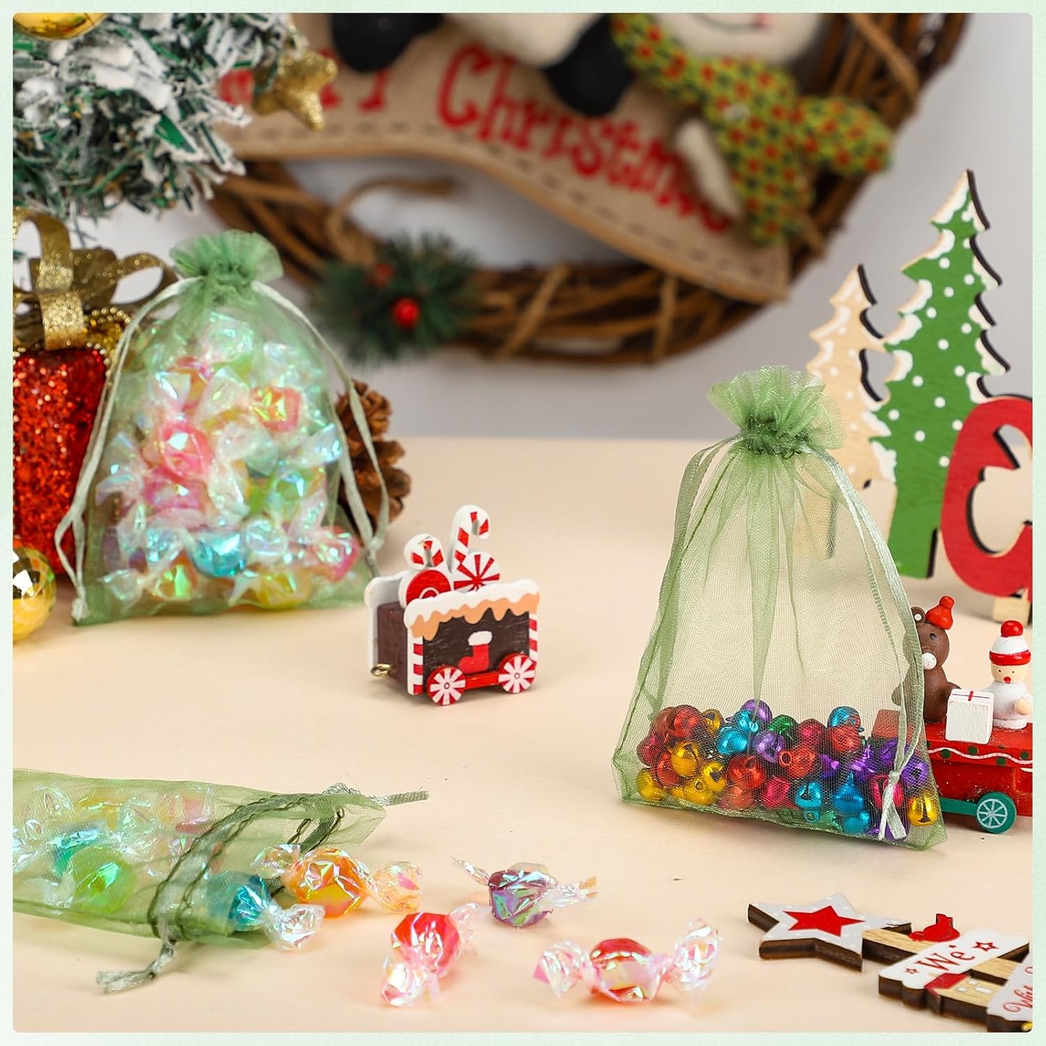 120PCS Sage Green Small Drawstring Bags 3.5x4.7 Inch Organza Bags Mini Mesh Gift Jewelry Pouches Candy Bag for Wedding Bridal Shower Baby Shower Birthday Party Favor