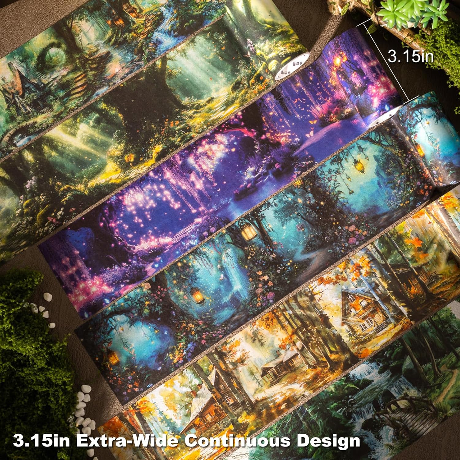 Forest-Themed Seamless Washi Tape Scrapbook Kit – 6 Rolls with Cottage, Waterfall & Fairy Forest Designs for Journaling, DIY Crafts, Gift Wrapping, Card Making and Decoration
