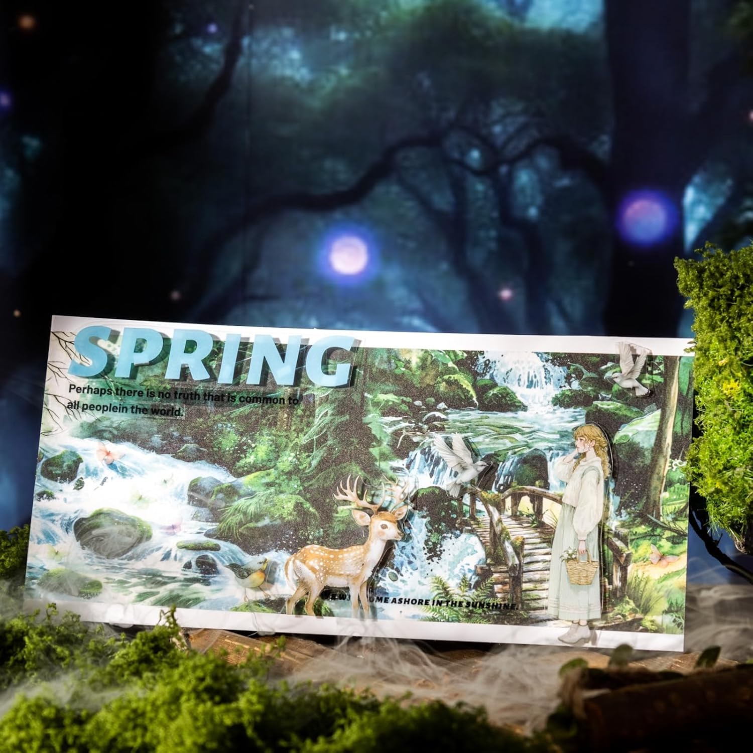 • Whimsical Forest Designs: Features 6 unique washi tape rolls with nature-inspired scenes like cottages waterfalls fairy houses and woodland lights to enrich scrapbook and journal pages with magical storytelling charm