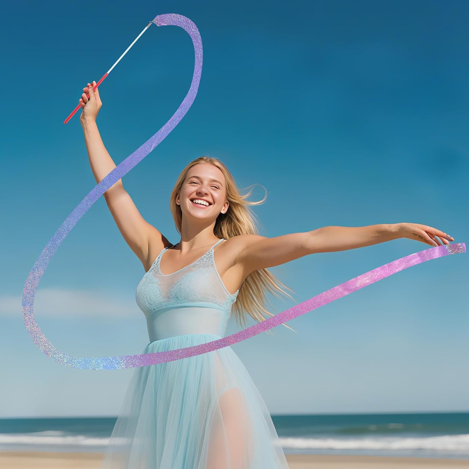 • Exquisite design: The dance streamers showcase a charming blue-purple gradient, blending beauty and style. Their glittering surface makes them even more appealing. Whether waved or spun on sunny, breezy days, the sparkling dance ribbon streamers create a stunning, dynamic display.