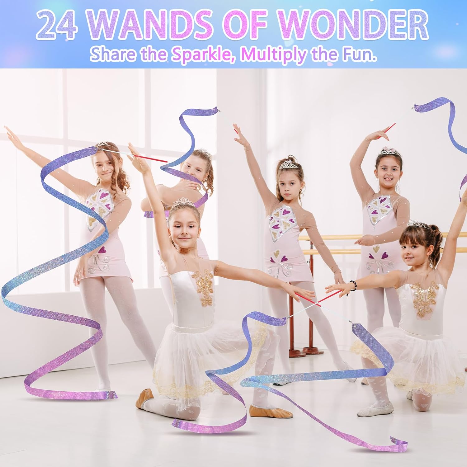 24 Pcs Sparkling Dance Ribbon for Kids Rhythmic Gymnastics Birthday Party Favors Twirling Streamer for Girl Princess Artistic Dancing Outdoor Game Supplies(Gradient Blue Purple)