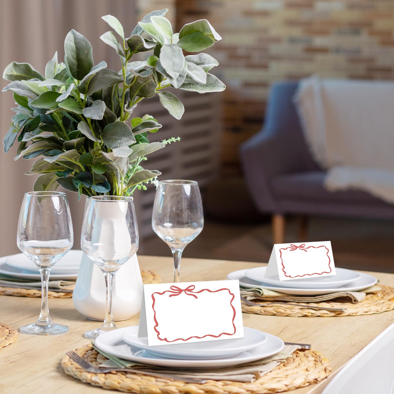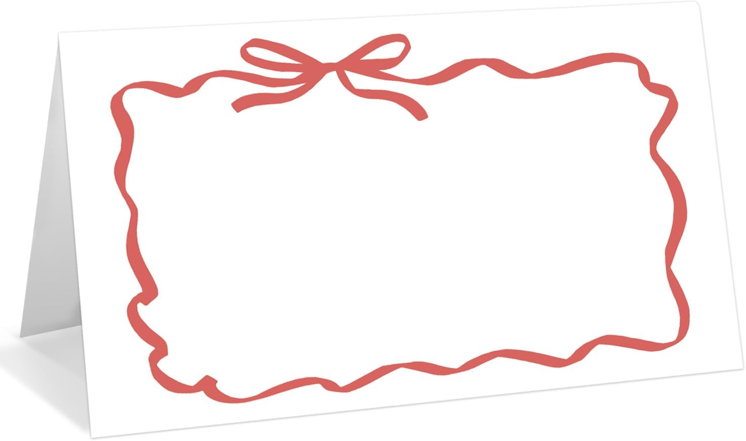 25 Pack Red Bow Wave Place Cards, Editable Name Cards for Table Setting, Tent Cards Food Label for Dinner Party, Bridal Shower, Wedding, Baby Shower and Events -T13