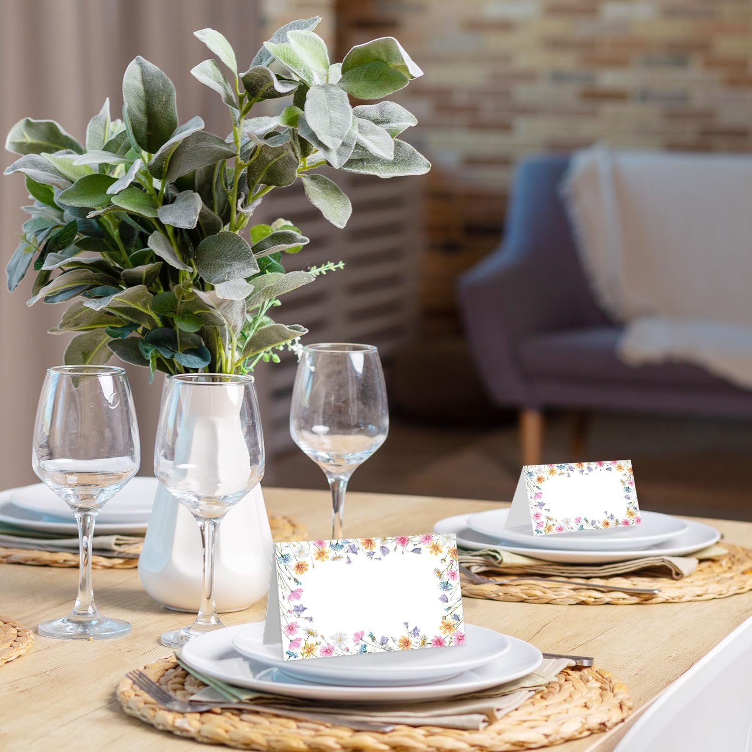 25 Pack Wildflowers Place Cards, Editable Name Cards for Table Setting, Tent Cards Food Label for Dinner Party, Bridal Shower, Wedding, Baby Shower and Events -T07