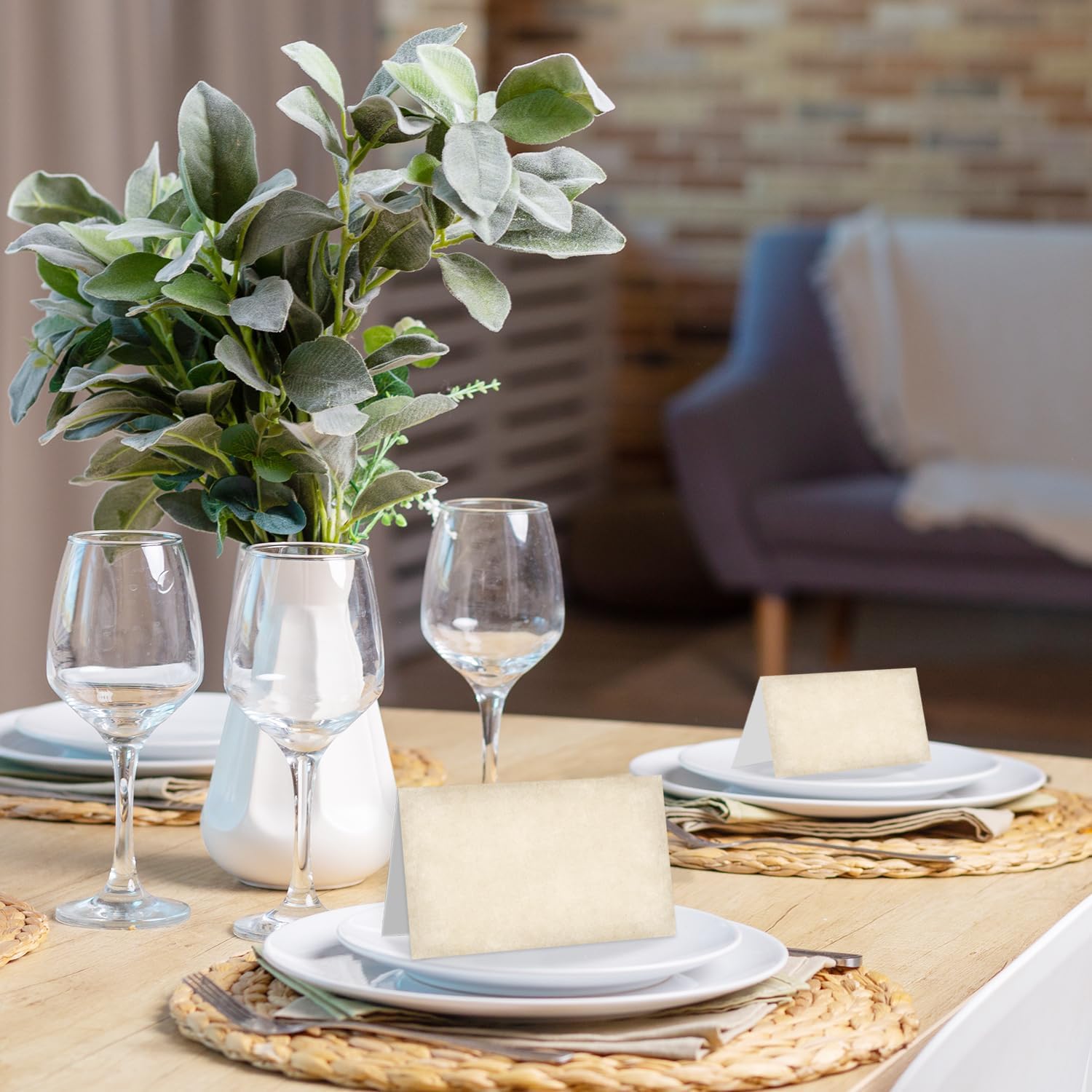 25 Pack Vintage Brown Place Cards, Editable Name Cards for Table Setting, Tent Cards Food Label for Dinner Party, Bridal Shower, Wedding, Baby Shower and Events -T34
