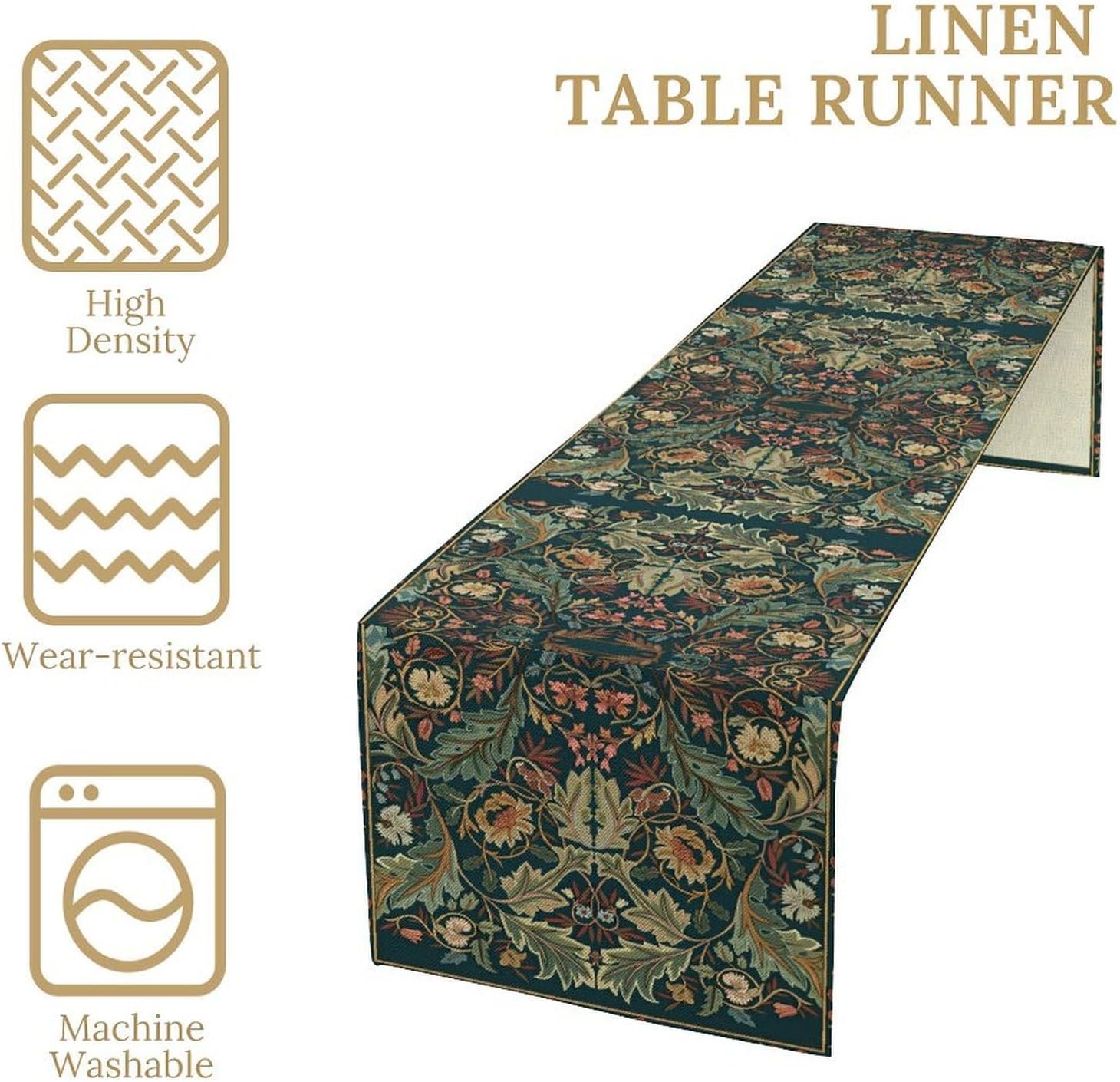 Green Morris Floral Table Runner, Boho Rustic Country Farmhouse Teal Red Rose Pattern for Home Kitchen Table Decor Dining Coffee Room Party Decor 13x60in