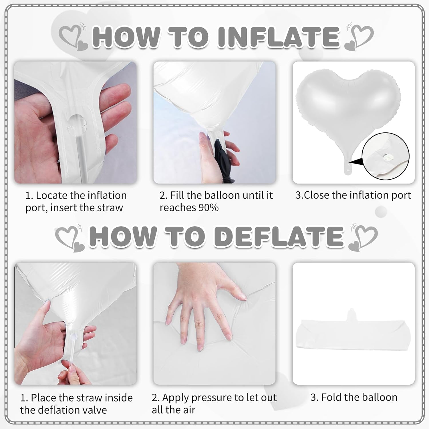 • 24 Inches Heart Balloons - Package contains 6 pcs white heart balloons, 1pc straw and 1pc ribbon.The white heart shaped balloons are ideal for any party. 24 inch is big and special enough to decorate your party.