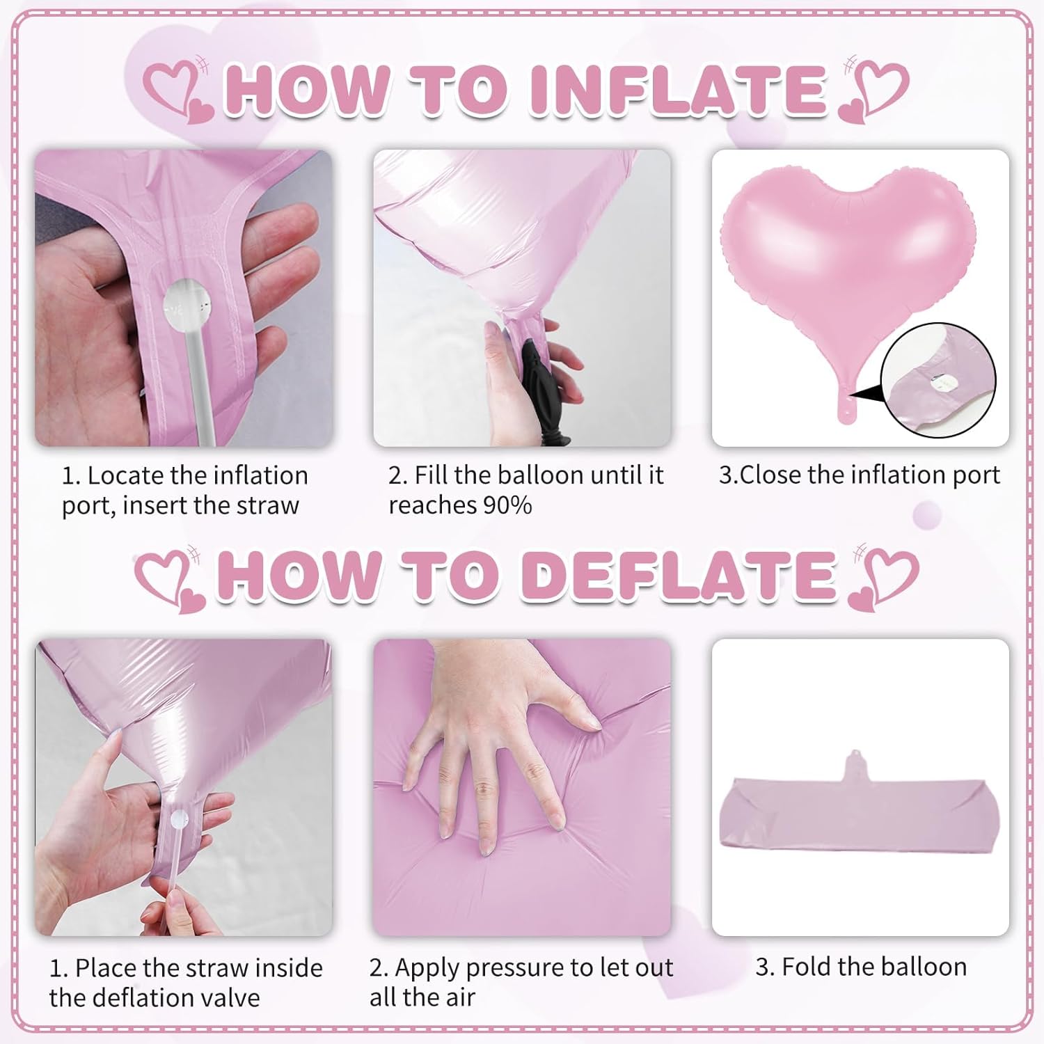 • Easy to Use - Effortlessly inflate our heart shaped foil balloons using the included straw. (If you want a floating effect, you can use helium)Simply pinch the self-sealing valve when full. It can be easily hung on the wall, ceiling or balloon garland, and it looks more advanced as a photo-taking tool!