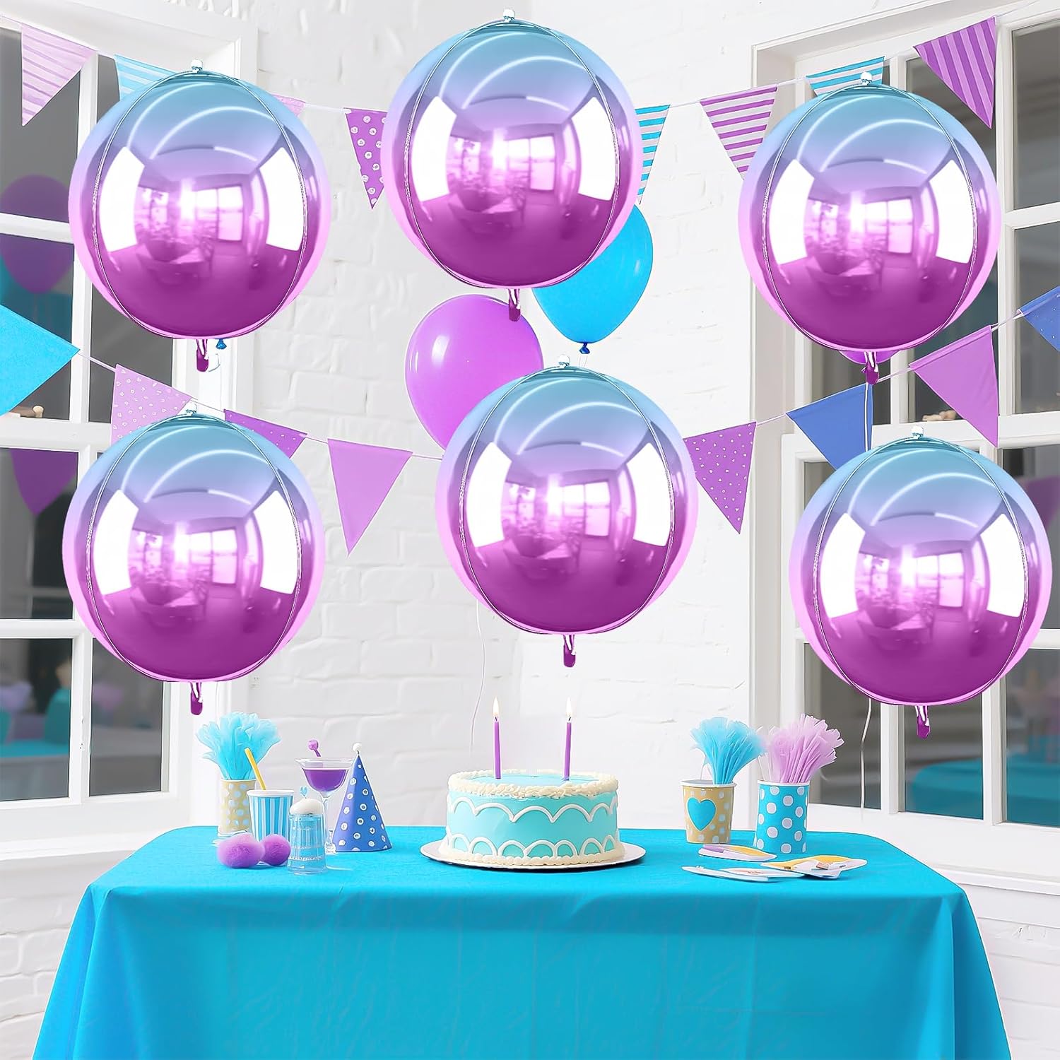 • Package: You will receive 6pcs 22inch 4D gradient purple round foil balloon, 1 straw + 1 roll of ribbon. This mylar balloons purple are perfect for your purple iridescent themed party.