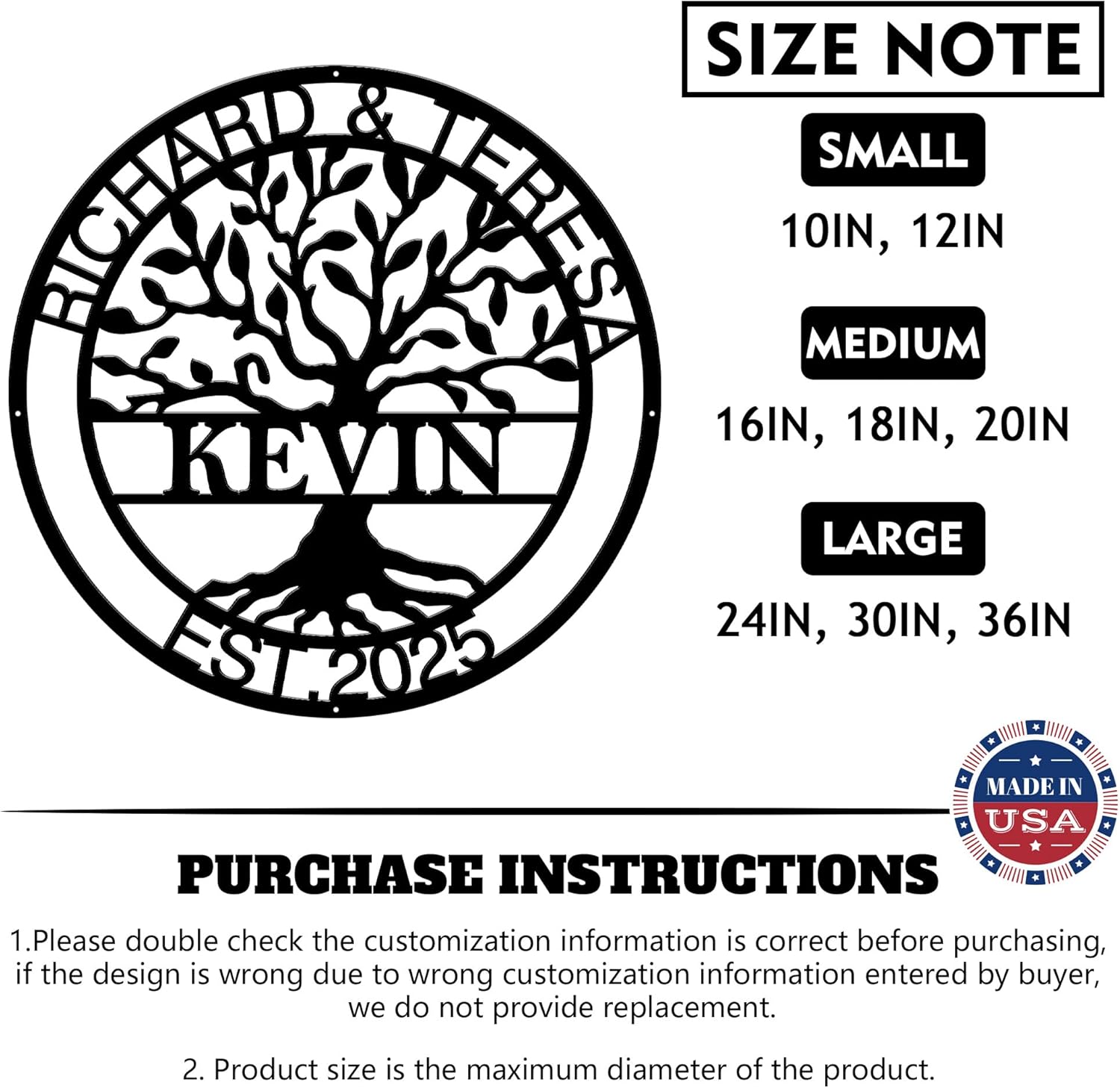 • Perfect Gift Ideas: We are confident that our personalized tree of life metal sign will exceed your expectations; Well made and meaningful, perfect for birthday, anniversary, housewarming, wedding, engagement, Christmas gifts for your family and friends; Sure to impress anyone who receives this gift.