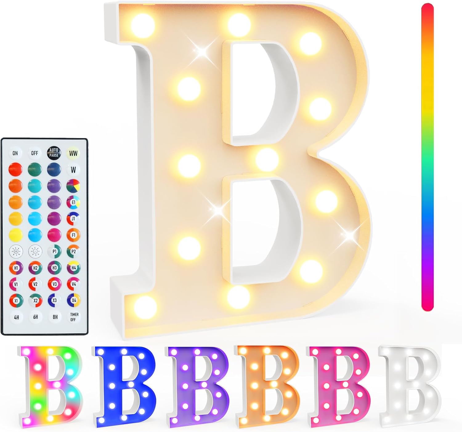 Pooqla Colorful Light Up Letters with Remote, Upgraded 35 Colors LED Marquee Letters, RGB Lighted Letter for Girls Teenager Gift, Birthday, Party, Wedding, Night Light, Room, Bedroom Decor, Letter B