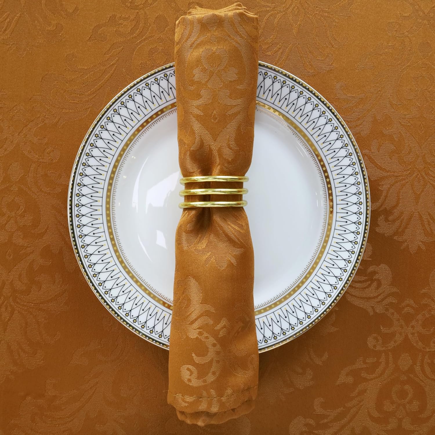Fall Cloth Napkins 20 x 20 Inch Set of 4 Washable Reusable Jacquard Damask Autumn Table Napkins for Harvest, Thanksgiving, Holiday, Brown/Amber (4 Pieces/Packs)