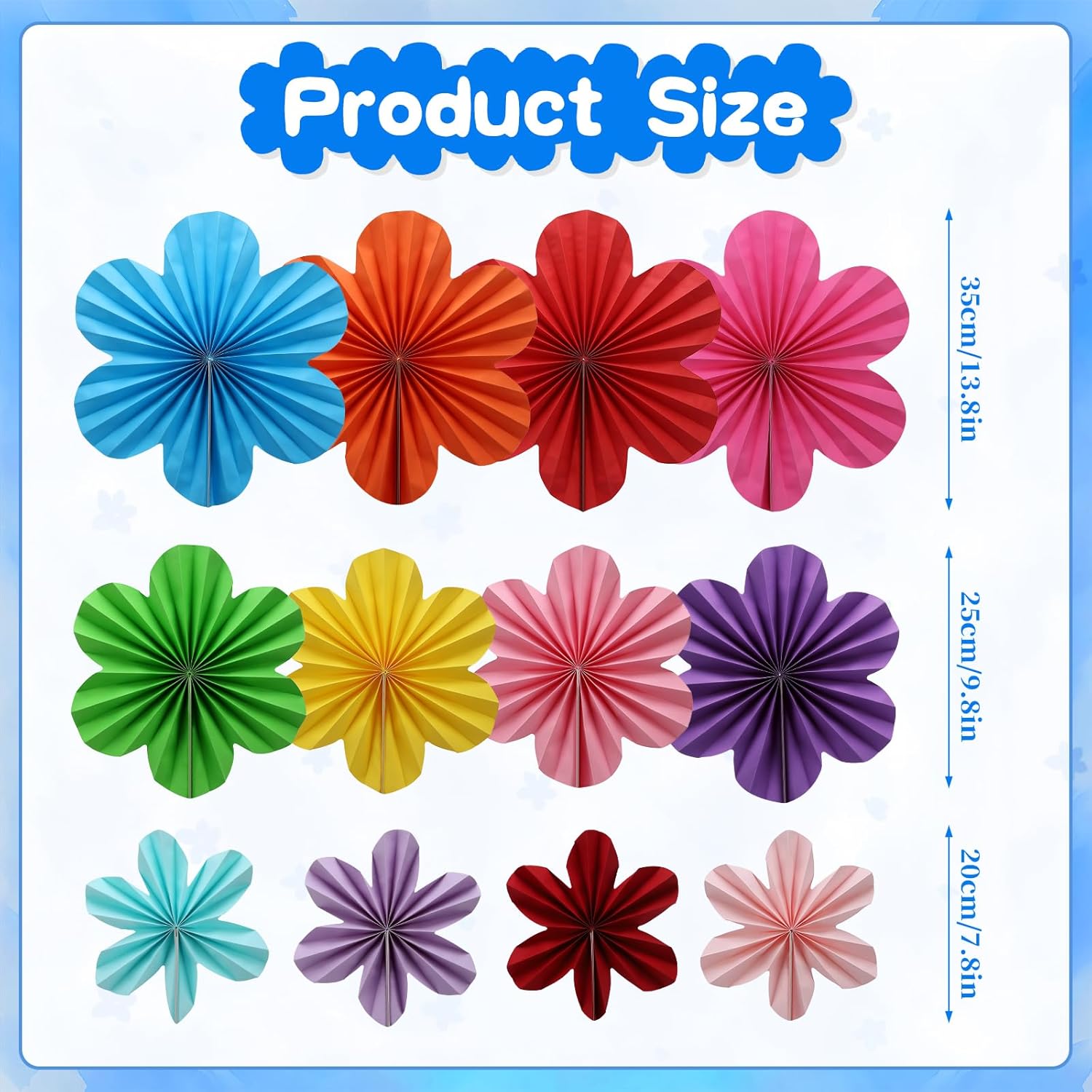• Vibrant Mexican Color Palette: Includes 12 flower paper fans in red, green, yellow, orange and so on, available in 14", 10", and 8" sizes for a festive and colorful display.