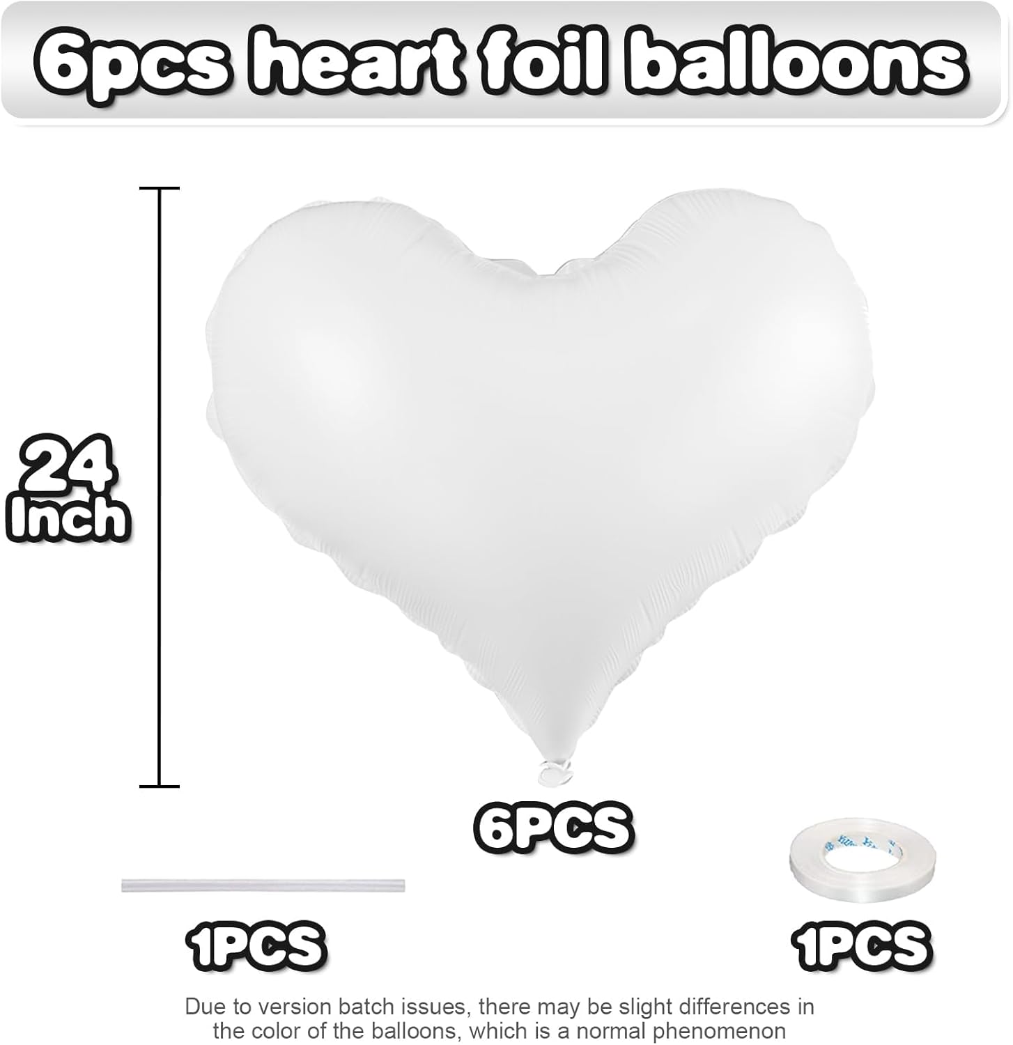 • Package: This set includes 6pcs of 24inch white heart foil balloons,1 ribbon,and 1 straw.The generous size makes these balloons perfect for transforming any space into a festive celebration venue, whether you're decorating for a wedding arch, photo backdrop, or party centerpiece.