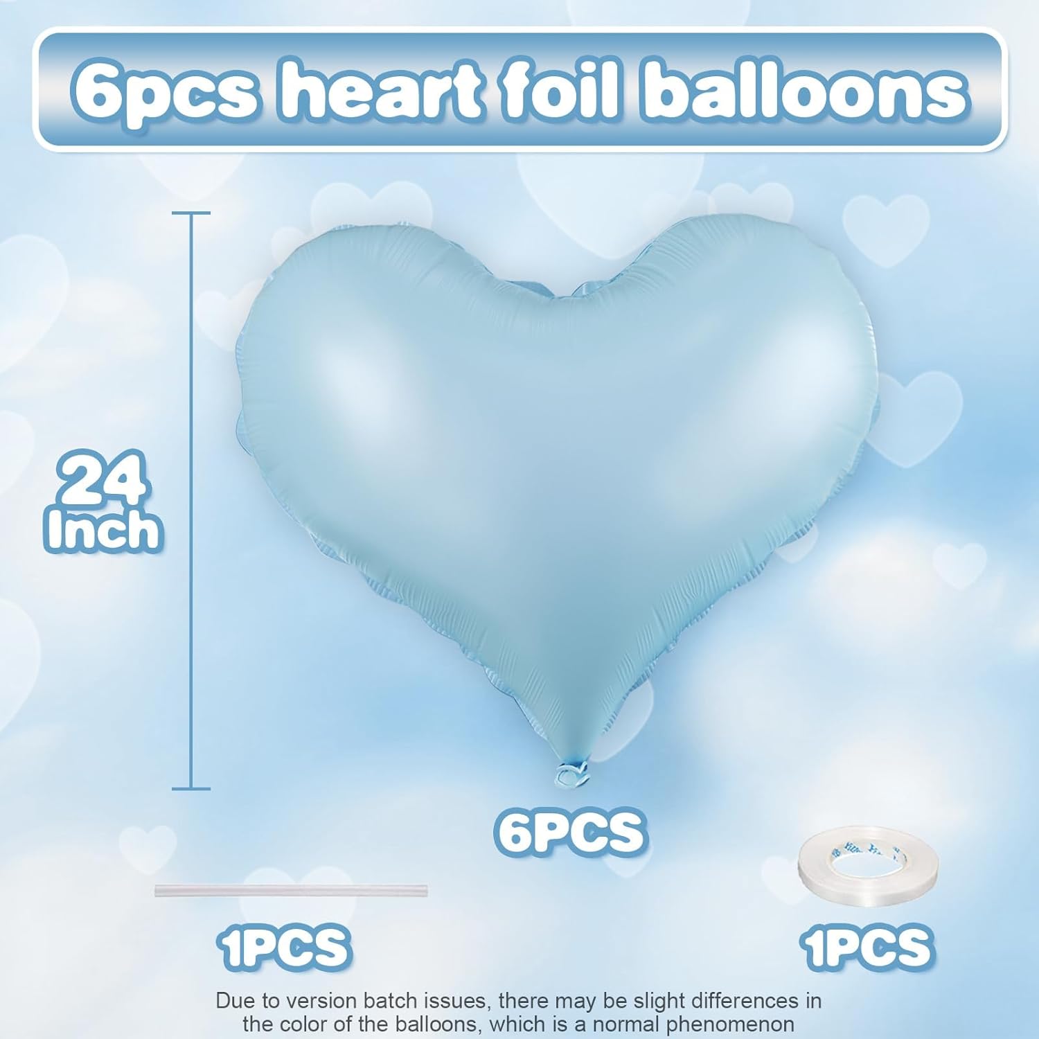 • Package: This set includes 6pcs of 24inch blue heart foil balloons,1 ribbon,and 1 straw.The generous size makes these balloons perfect for transforming any space into a festive celebration venue, whether you're decorating for a wedding arch, photo backdrop, or party centerpiece.