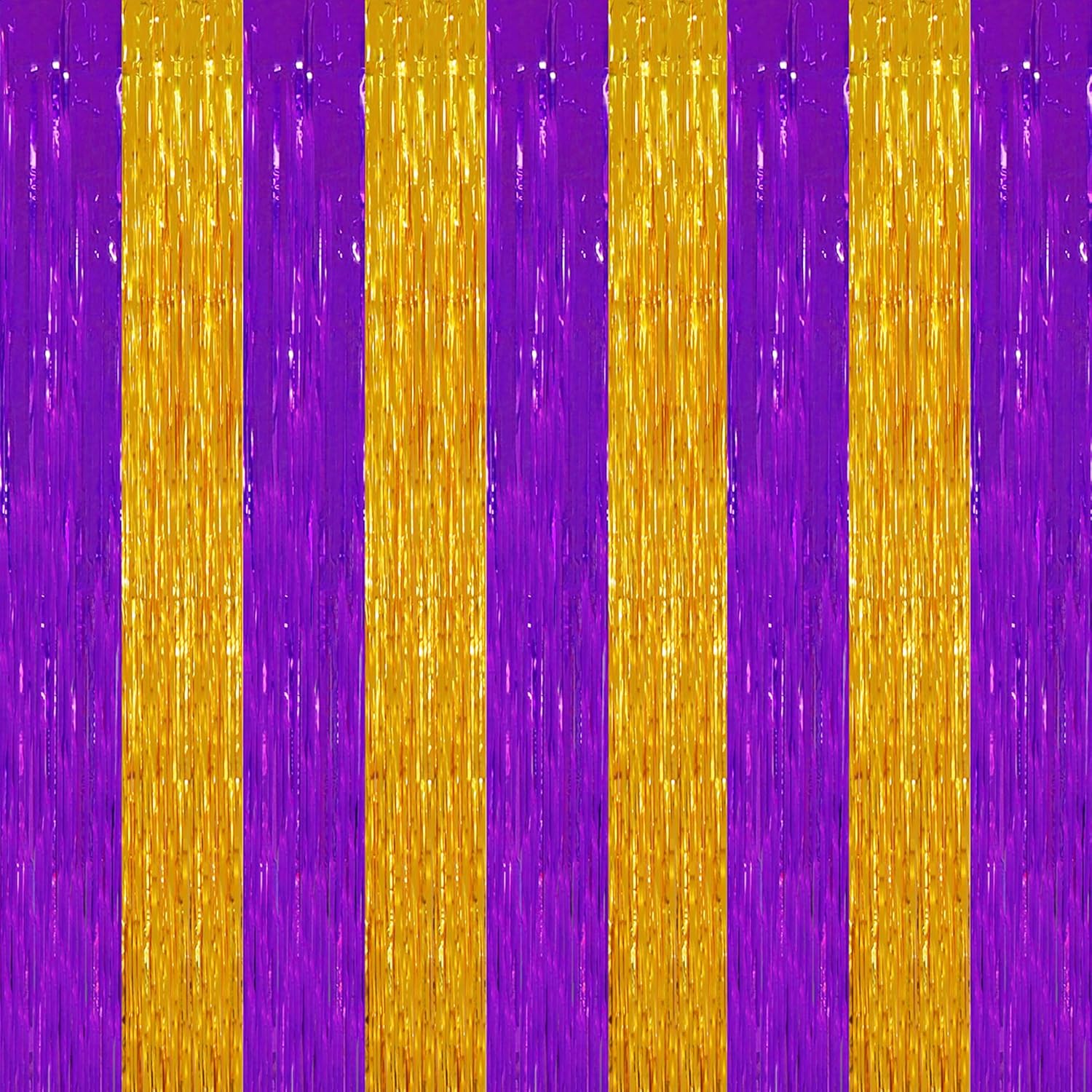 TONIFUL 2Pcs Purple Gold Door Streamers,Green Photo Booth Backdrop,Metallic Streamers Green Foil Fringe Curtains for Birthday,Christmas,New Year,St. Patrick's Day Party Streamers Decor
