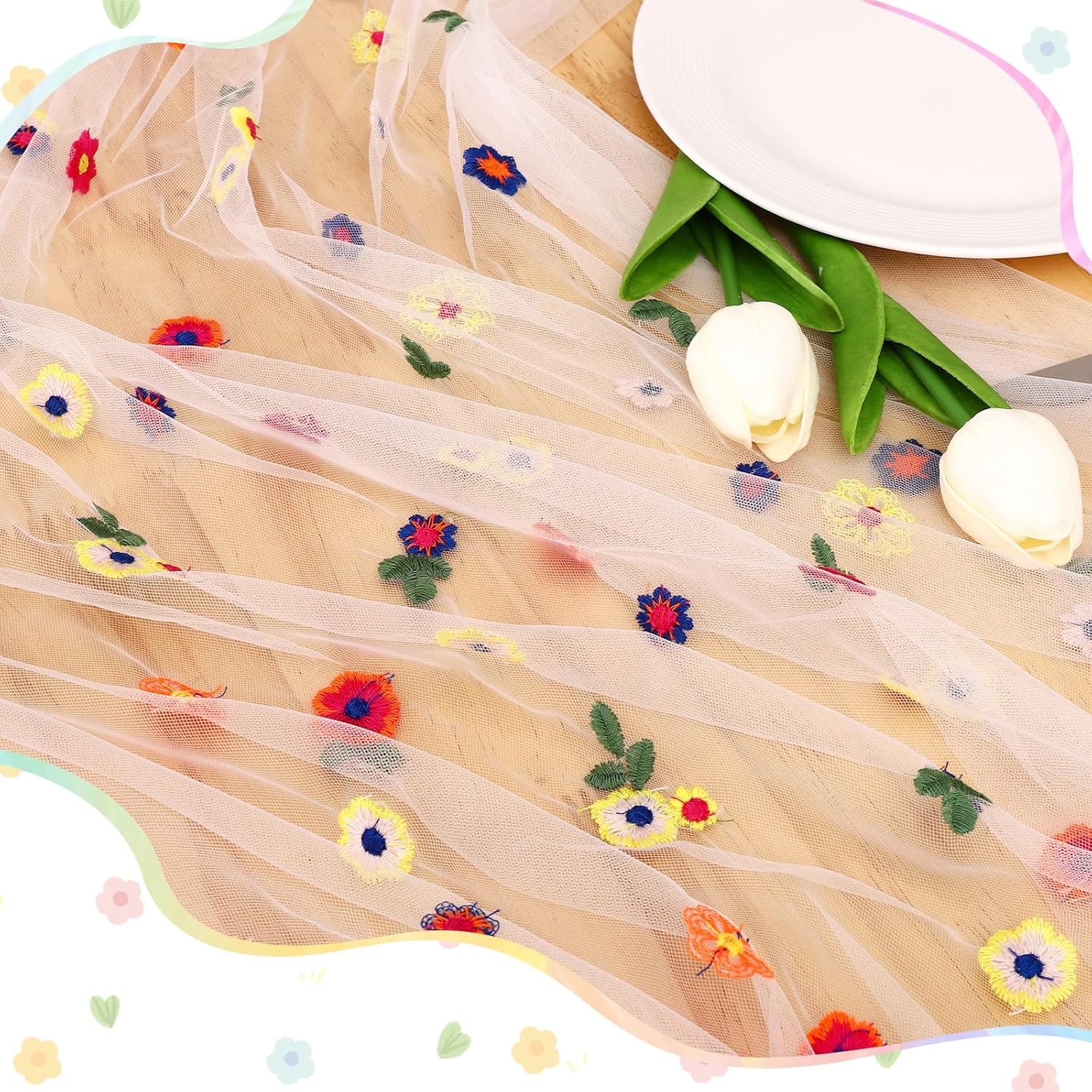• High-Quality Tulle Fabric: Made from white chiffon fabric, this lightweight embroidered table runner is not only beautiful but also adds a touch of elegance to your dining experience. Each sheer floral table runner measures approximately 29 x 120 inches.