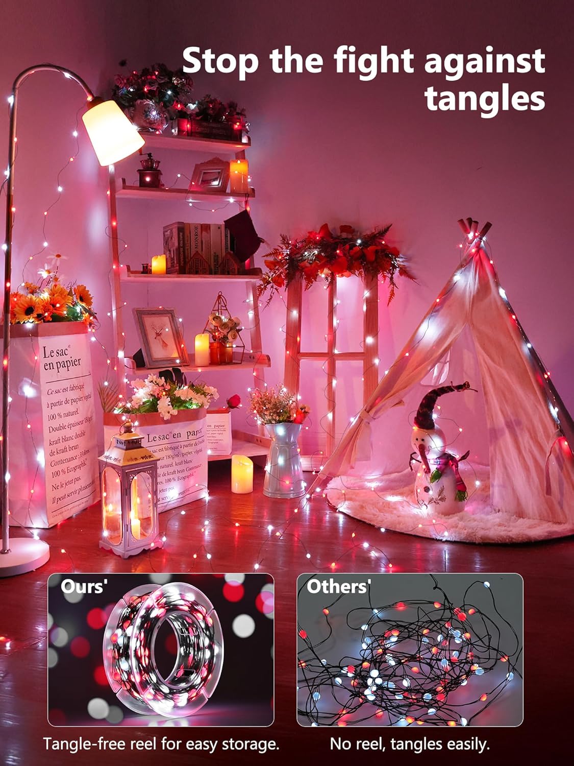 • Music Sync Feature & Group Control: Enjoy dynamic lighting that dances to the rhythm of your music. The built-in high-sensitivity microphone syncs your lights with sound, creating the perfect atmosphere for parties and gatherings with friends and family. Create smart groups to control multiple rainbow fairy lights simultaneously with a single command. Share control with family members so everyone can easily manage the festive lighting.