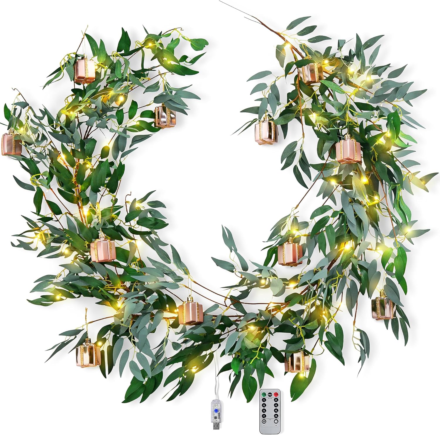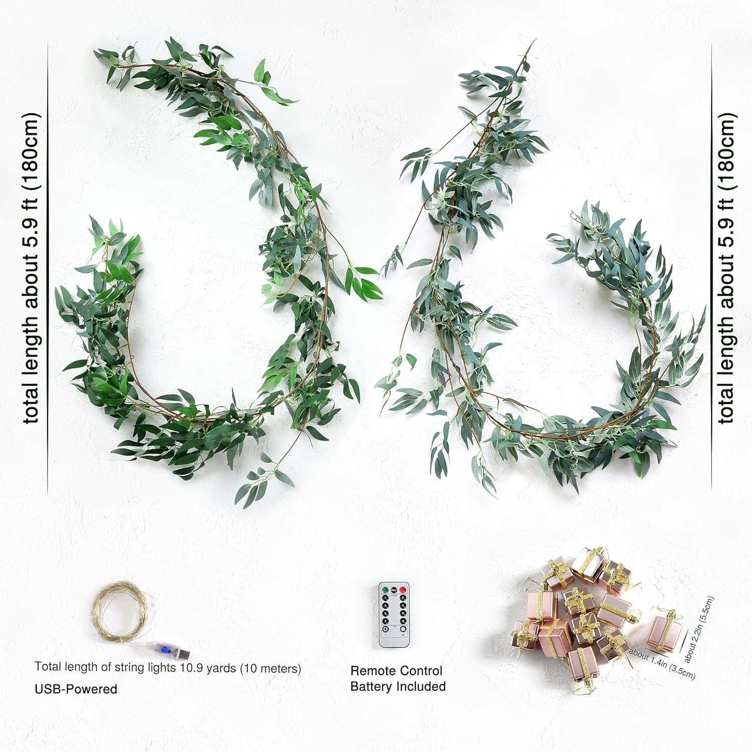• Soft-touch eucalyptus greenery – Lifelike artificial eucalyptus leaves with a realistic shape and rich green color wind effortlessly around stair railings, window frames, headboards, and dining setups