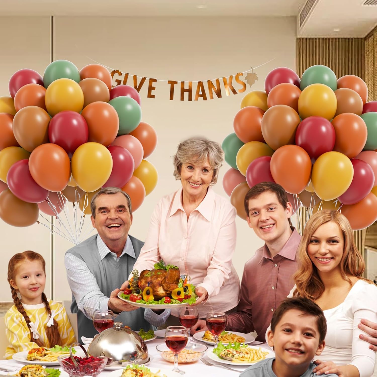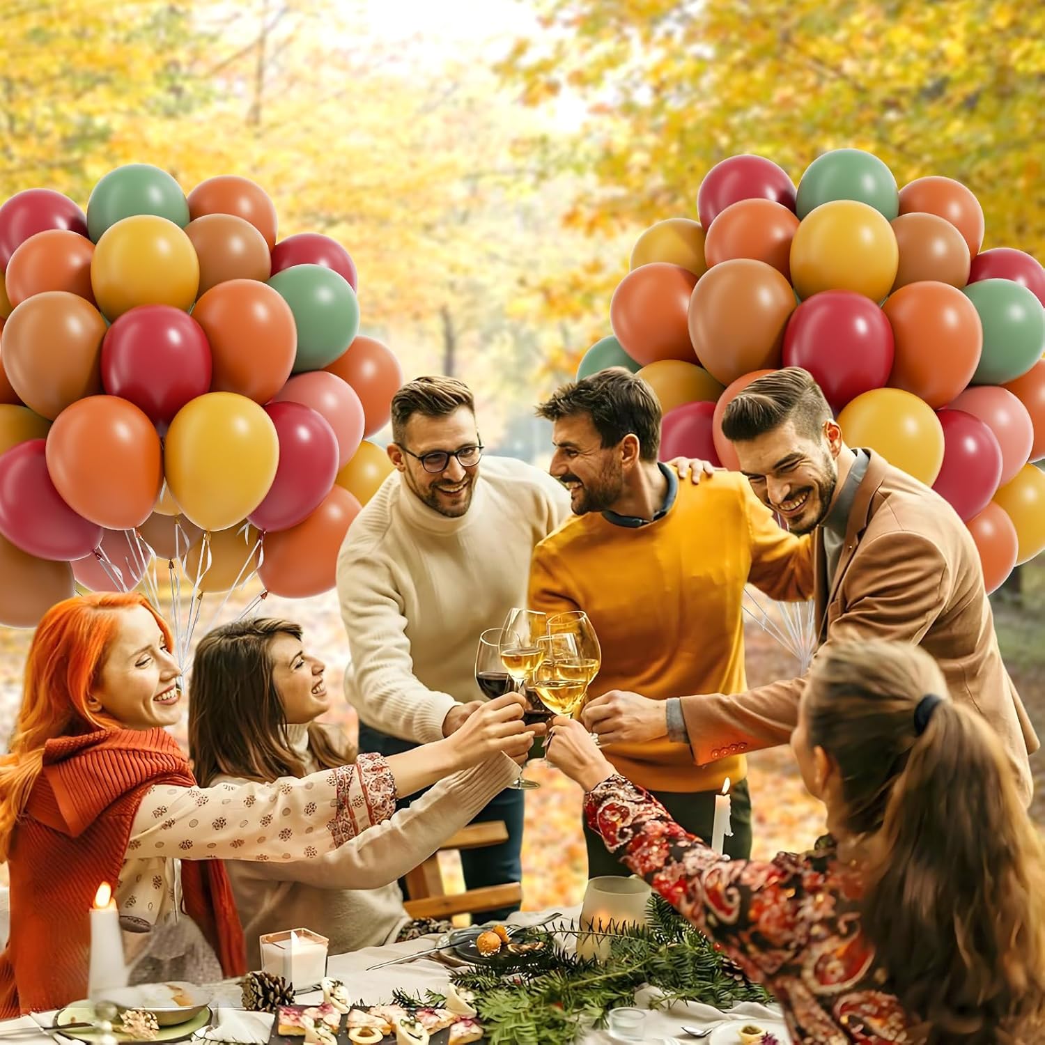 60pcs Fall Balloons, Thanksgiving Balloons 12inch with Burgundy Brown Sage Green Burnt Orange Mustard Yellow Dusty Pink Balloon for Fall Birthday Party Decorations