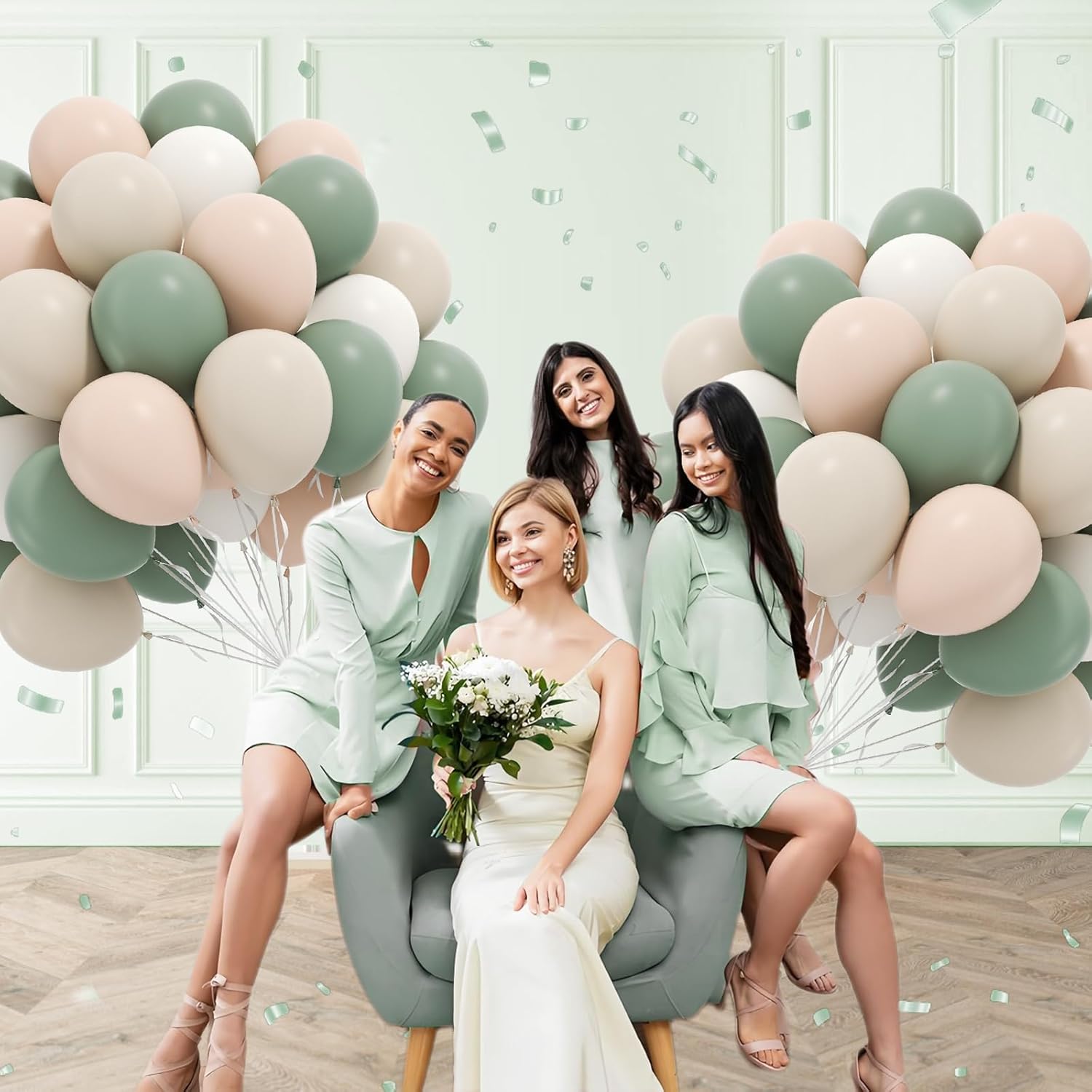 • What You Will Get: The package includes 12inch sage green balloonsx25, 12inch nude balloonsx10, 12inch sand white balloonsx15, 12inch white balloonsx10, glue dotsx20, white ribbonx1